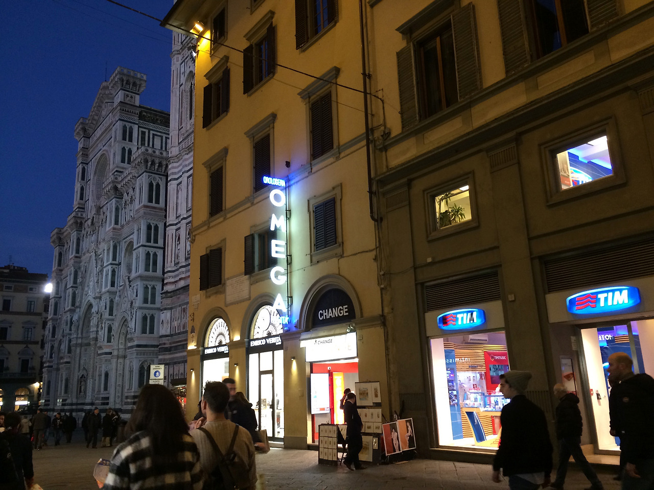 무작정 직진했더니 두오모가 나왔다. 조토의 종탑 옆 건물에 있는 TIM 매장에 들어가 유심칩을 샀다. 원래 4GB짜리가 23유로인데, 이유는 모르겠지만(잘 못 알아들었습니다) 프로모션 기간인지 13유로에 해줬다! 운이 좋다.