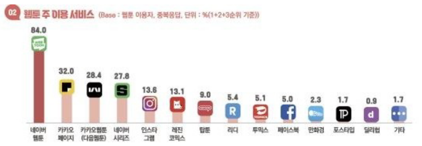 2위인 카카오 페이지와 비교해 보아도 월등한 이용자 빈도를 보여주는 모습입니다.