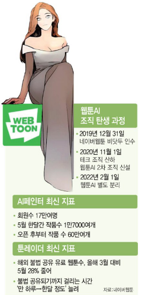 물론 웹툰 조직 등 비교적 최근 신설된 조직들에는 적극적인 AI 연구와 채택이 이어지고 있고, 적극적으로 기술을 활용하는 모습들이 보여지는 것도 사실입니다. 웹툰 조직은 웹툰 AI조직을 따로 분리하여 AI 서비스를 웹툰에 접목시키기 위한 다양한 기술 개발을 진행중입니다. 네이버 조직 중 가장 혁신적인 조직이라도 불러도 과언은 아니겠죠.