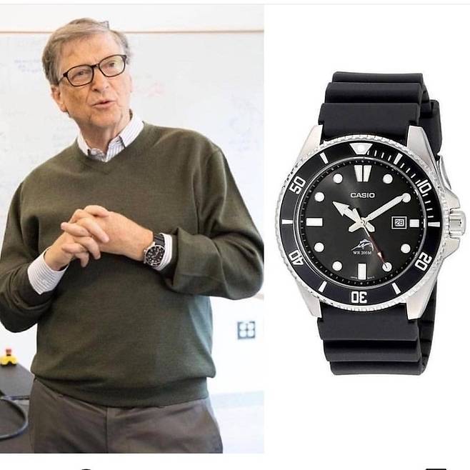 빌 게이츠가 애용하는 시계 중 하나가 바로 카시오 듀로 MDV-106, 일명 ‘말린(Marlin)’입니다. 수억 달러를 소유한 부자가 착용하기에는 한화 10만 원 안팎의 소박한 모델이지만, 그는 한 인터뷰에서 “비싼 시계 대신 믿을 수 있는 시계가 좋다”고 강조한 바 있습니다. 이런 소탈한 면모가 오히려 더욱 큰 존경을 불러일으킵니다.