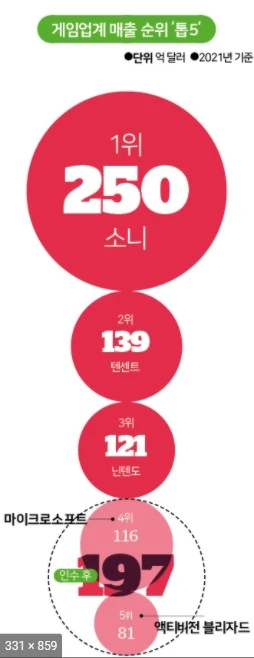 다음 표는 MS가 액티비전 블리자드를 인수하기 전에 게임 시장의 순위입니다.