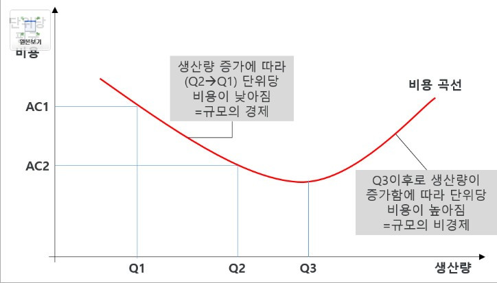 이젠 7나노를 지나, 5나노, 4나노 공정을 완성시키고 얼마 전 2022년 하반기부터 삼성전자 파운드리를 시작으로 3나노 공정에 돌입한 상황입니다. 그런데 이렇게 기술을 통해 첫 번째 한계를 돌파해 낸 반도체 업계는 전혀 다른 두 번째 한계에 봉착하게 됩니다. 그것은 바로 비용문제입니다. 레거시 공정에서야 반도체 집적도를 높이면 칩의 크기가 전체적으로 줄어들고 생산성이 향상되면서 규모의 경제 효과가 작동하여 칩당 단가를 떨어뜨릴 수 있었습니다. 하지만 이러한 생산성 향상과 제작비용 하락 효과는 어느 수준에 도달하게 되면 고정비용이 기하급수적으로 증가하며 규모의 비경제로 역전되는 순간이 존재합니다. 즉 아무리 생산성을 높여도 생산 단가가 높아지는 아이러니가 발생하게 되는 것입니다.
