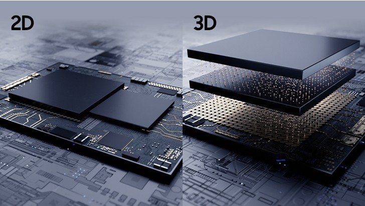3D 방식은 인터포저의 도움을 받지 않고, 로직 블럭과 메모리 블럭을 위로 쌓아 올리고 실리콘 관통 전극인 TSV로 서로를 연결함을 통하여 각 칩 간의 연결성을 한 단계 더 업그레이드 시킨 패키징 방식입니다.