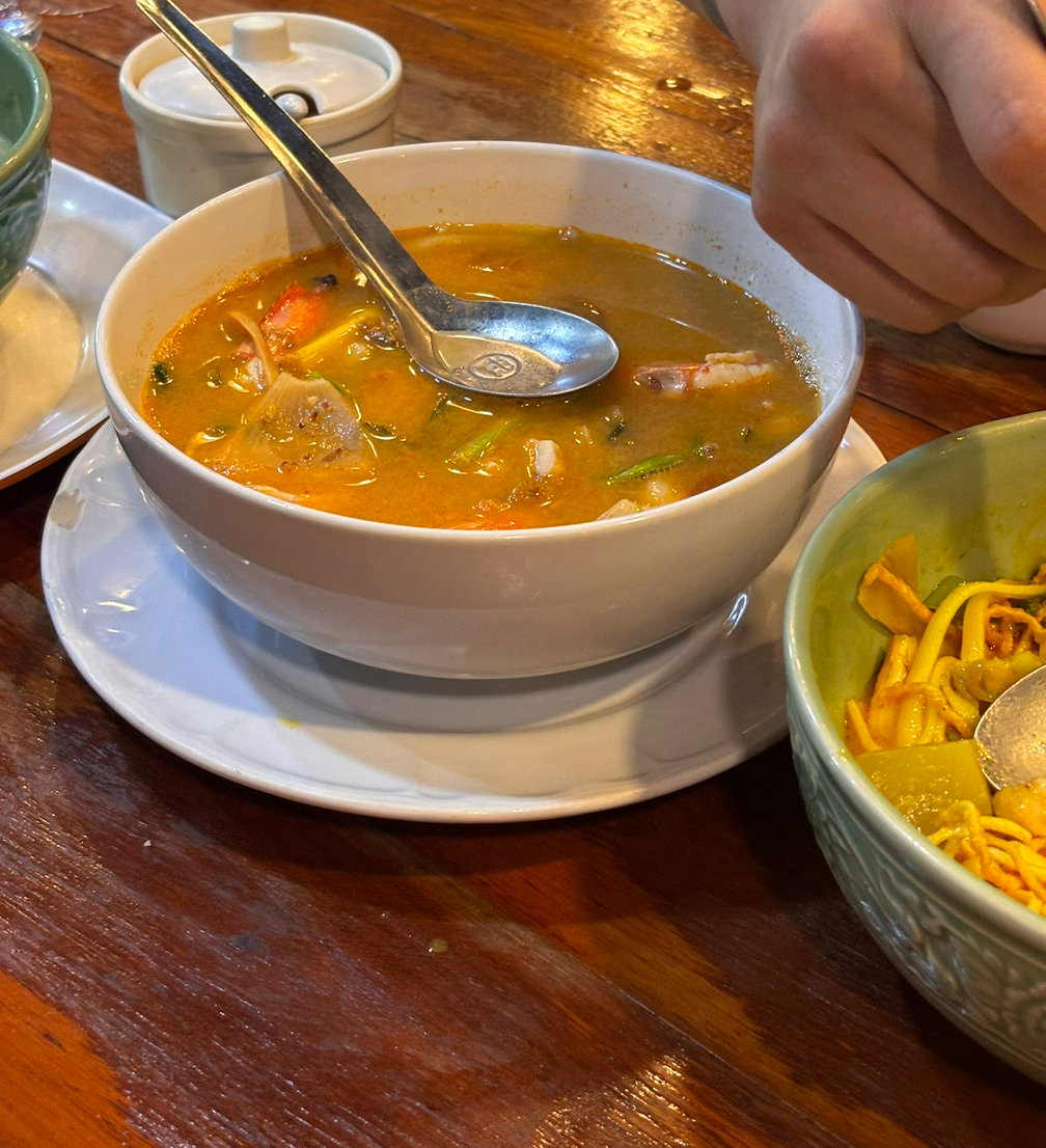 점심 동행들과는 ‘아로이 디’라는 음식점에 갔다. 혼자 가면 메뉴 하나만 시켜 먹었을 텐데 여럿이 가니 다양한 메뉴들을 맛볼 수 있어 좋았다. 다행히 오늘 모인 사람 모두가 태국 음식과 향신료에 대해 모두 ‘호’인 사람들이었다. 각자 먹고 싶은 메뉴를 하나씩 골라 셰어 하기로 했다. 무난한 팟타이 외에도 그린 커리, 똠양꿍, 뿌빳 퐁 커리(게가 들어가는 커리요리), 카오쏘이(태국 북부에서 먹는 커리누들) 등 호불호가 갈릴 수 있는 메뉴들도 모두 통과되었다. 모든 메뉴들이 다 기본 이상으로 맛있었다. 모두가 만족스럽게 식사를 마쳤다.
