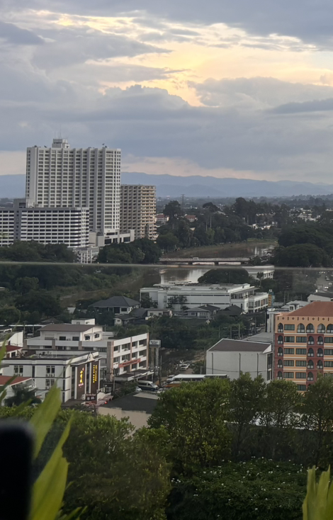 내가 머무는 레지던스 루프탑에서는 360도로 치앙마이를 볼 수 있다고 해도 과언이 아니다. 주변에 높은 건물이 없기 때문이다. 도이수텝이라는 치앙마이에서 가장 유명한 사원이 있는 수텝산이 멀리 보이고 삥강 줄기도 내려다 보인다. 해가 뜨는 곳에서 시작해서 해가 기울어 저무는 곳까지 볼 수 있고 종종 비행기도 날아다녀 그냥 올라가서 풍경을 바라보는 것만으로도 좋은 곳이다. 어쨌거나 환경이 사람을 만든다고(?) 집에서는 엄두도 내지 못하는 모닝, 거기에다가 공복 수영을 했다. 고작 하루했지만 벌써 건강해지는 기분이 드는 건 왜일까.