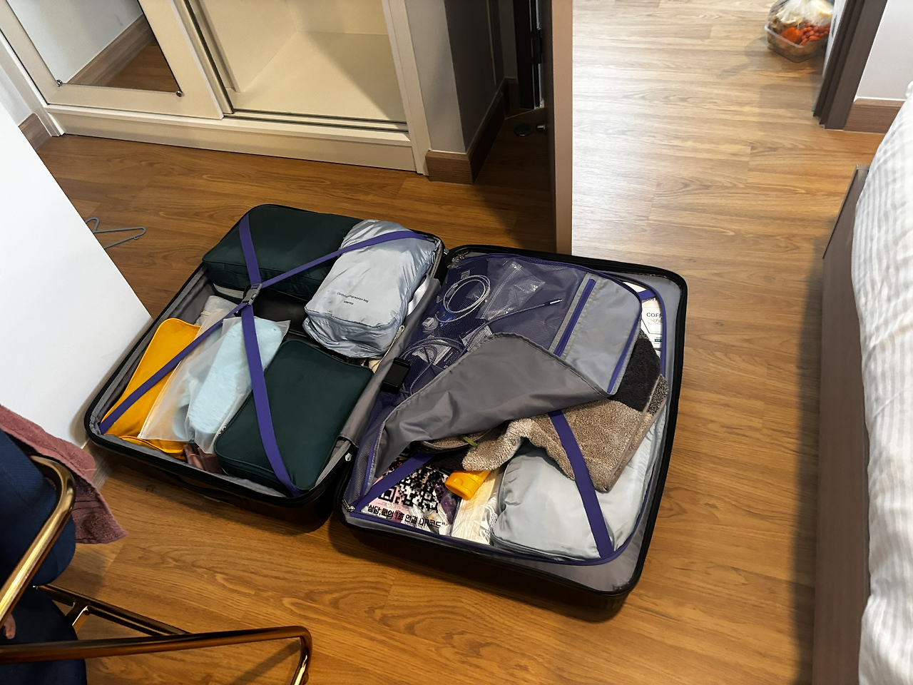예약을 마치고 나니 그래도 마음이 놓였다. 그렇지만 콘도에서 차를 보내주기로 한 시간이 얼마 남지 않았다. 이곳에서 오래 머물 거라고 생각하고 풀어헤쳐 둔 짐들을 모두 다시 싸야 한다. 어젯밤 세탁해 널어 둔 빨래들이 마르지도 않았지만 다시 캐리어 속으로 쑤셔 넣을 수밖에 없었다. 남편이 냉장고에 가득 채워주고 간 식재료들 중 과일과 요거트처럼 간단한 것들은 챙기고 30개 정도 되는 생수병과 음료수, 생선과 채소, 아이스크림은 복도에 내놓은 뒤 한인 카톡방에 공유해 이곳에 머물기를 선택한 분들께 나눔 했다. 자연 앞에서 인간은 정말 한 치 앞도 모르는 존재일 수밖에 없다. 며칠 후에는 다시 돌아올 수 있을 것이라는 희망을 품고 슬리퍼는 두고 왔다. 미련을 여기저기 남겨둔 채 호텔에서 제공해 준 차에 탑승해 삥강 건너로 넘어왔다.