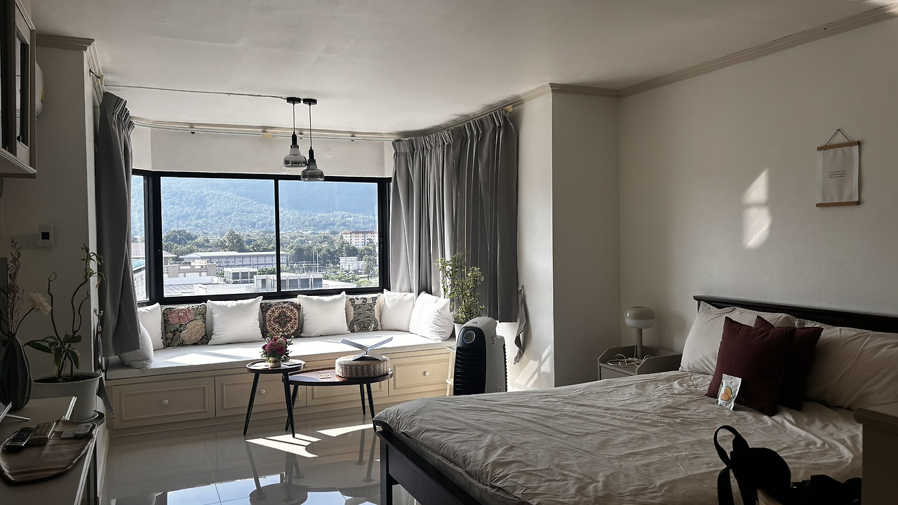 홍수 발생 후 3일이 지났음에도 내 장기 숙박 레지던스는 아직 홍수 복구가 되지 않았다고 했다. 내 방의 호스트는 본인이 살고 있는 집도 침수되었기 때문에 내가 머무는 콘도를 해결하러 갈 수 없다고 했다. 부랴부랴 에어비앤비를 뒤져 님만해민에 위치한 원룸 아파트로 숙소를 정했다. 3일 뒤에는 홍수 피해가 해결되고 물이 빠져서 원래 있던 곳으로 돌아갈 수 있겠지, 하고 2박 3일만 예약했다. 건물은 낡았지만 새로 리모델링을 하고, 산 전망이 보이는 큰 창을 가진 방으로 예약을 했다. 이전에 머무르던 고급 레지던스에 비할 바는 아니지만 1층에 경비실도 있고, 엘리베이터에 방 키를 인식해야 작동하는 방식이어서 마음이 좀 놓였다. 이 아파트는 대부분 방마다 싱크대와 냉장고를 갖추고 있어서 음식을 해먹을 수도 있었다.