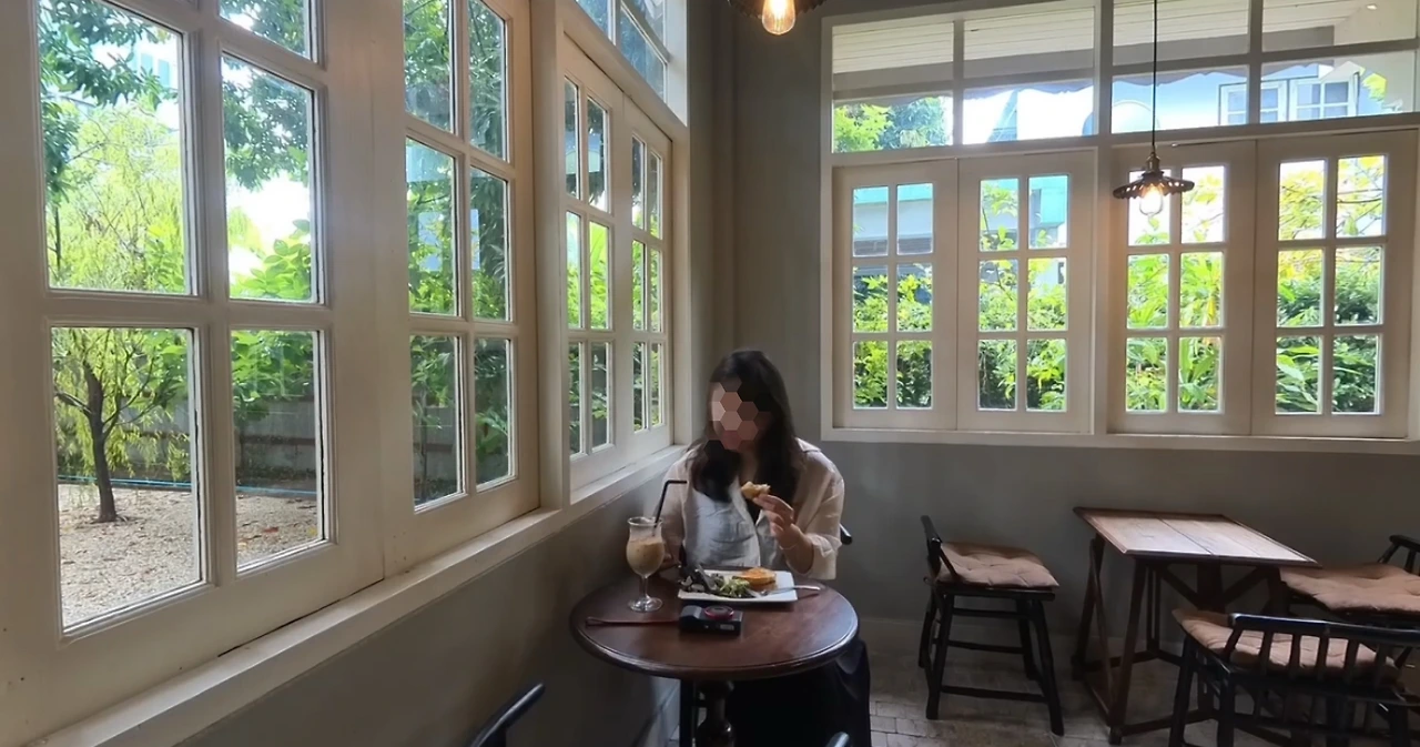 어떤 카페를 갈까, 찾아보다가 유럽풍의 아주 멋진 목조주택을 카페로 운영하고 있다는 곳을 찾았다. 그런데 그 카페 2층은 게스트하우스로 운영한다고 했다. 혹시나 예약이 가능할까 했는데 마침 2박 예약이 비어있었다(나중에 알고 보니 운 좋게 다른 사람이 취소한 객실을 잡게 된 것이었다). 방이 세 개뿐이어서 한국에서 미리 예약하고 와야 할 정도로 예약이 어려운 곳인데 럭키비키였다. 목조주택만의 감성과 빈티지 가구가 이곳만의 특별한 분위기를 자아냈다. 또, 쩻욧 지역은 마음먹고 가지 않으면 여행자가 잘 가지 않는 지역인데 이 숙소에 머문 덕분에 쩻욧 지역을 산책하며 둘러볼 수 있었다.