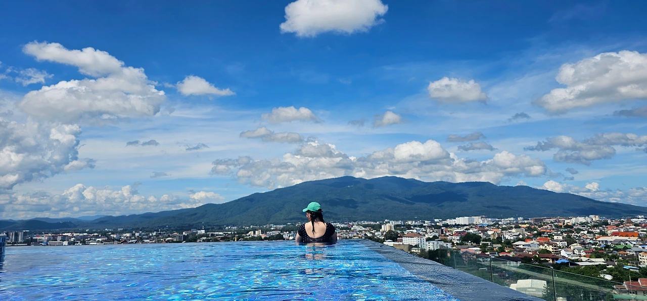이곳에서 머물고 싶어 치앙마이 한 달 살이를 결정했을 정도로, 가장 기대가 컸던 숙소이자 내가 가장 오래 머물기로 예약해 둔 곳이었다. 2023년에 지어진 곳으로 모든 시설이 깨끗할 뿐 아니라 루프탑에 있는 길이 160m의 수영장이 이 콘도의 킥이다. 뿐만 아니라 17층에는 사우나, 피트니스센터, 워킹 라운지 등 공용시설이 잘 갖춰져 있으며 1층에는 카페, 네일숍, 여행사 등이 있어 많은 것들을 이 콘도 안에서 해결할 수 있었다. 하지만 홍수 이후 공용시설은 모두 문을 닫았고, 대피하지 못한 사람들은 고립되었으며 단수와 단전으로 엘리베이터를 이용하지 못했다. 3주를 예약했으나 실제로 이용한 기간은 6일에 불과하다.