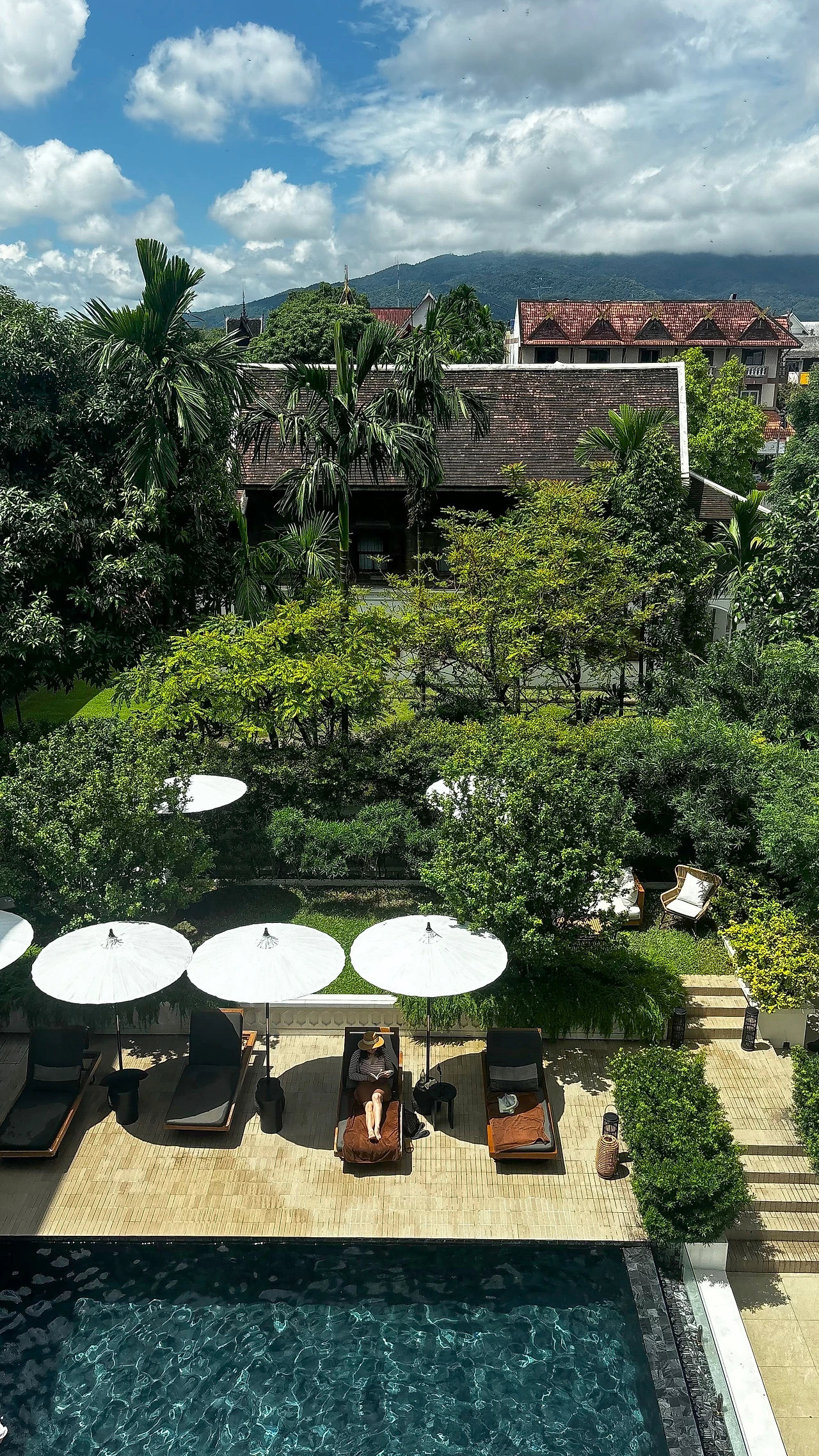 여행 첫 주, 남편과 올드타운에서 2.5일, 님만해민에서 2.5일을 머물기로 하고 선택한 호텔이다. 올드타운에서 꽤 비싼 호텔에 묵었기 때문에 님만에서의 숙소는 비교적 저렴한 곳으로 골랐다. 선택의 이유 중 가장 큰 것은 마야몰(MAYA MALL)이라는 랜드마크 격 대형 쇼핑센터에서 도보 1분 거리로, 마야몰 세권이었던 점이다. 마야몰에는 지하의 대형마트뿐 아니라 층별로 패션, 전자기기 매장, 푸드코트, 공유오피스, 카페 등을 모두 갖추고 있어 여행자라면 한 번은 꼭 가게 되는 곳이다. 이 호텔의 특이한 점은 수영장을 가운데 두고 한 건물은 호텔, 또 다른 건물은 레지던스로 운영된다는 점이었다. 단기 여행객과 장기 숙박객이 수영장에서 모이는 광경이 참 재밌었는데 구명조끼, 튜브 등을 방 테라스에서 걷어서 바로 내려와 장비가 빵빵한 사람들은 모두 장기숙박객이었다.