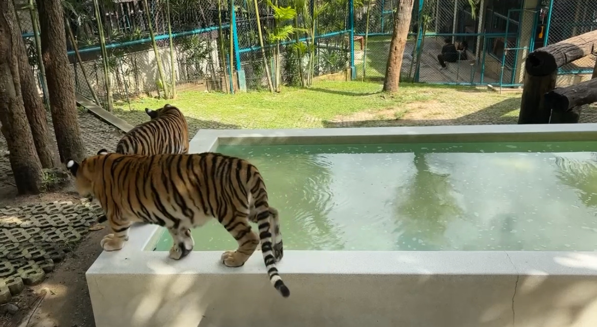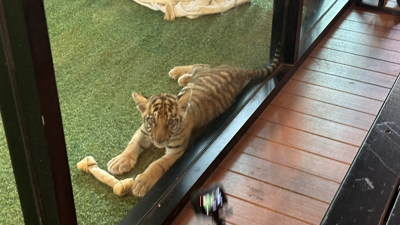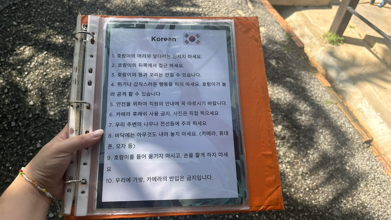 결국 용기를 내어 5개월 아기 호랑이들을 만났다. 처음에는 무서웠지만 훈련이 잘 되어 있으니 겁먹지 말라는 사육사들의 말을 듣고 조심스레 만져보기도 했다. 호랑이라기엔 좀 큰 고양이 같기는 했지만 먹이를 먹을 때 보이는 이빨과 엄청나게 큰 사이즈의 발을 보며 맹수임을 실감했다. 두 마리 호랑이는 한 달 차이로 태어난 형제라고 했다. 티격태격 싸우기도 하고 함께 물놀이를 하기도 하며 지내는 모습이 나중에는 귀여워 보이기까지 했다.