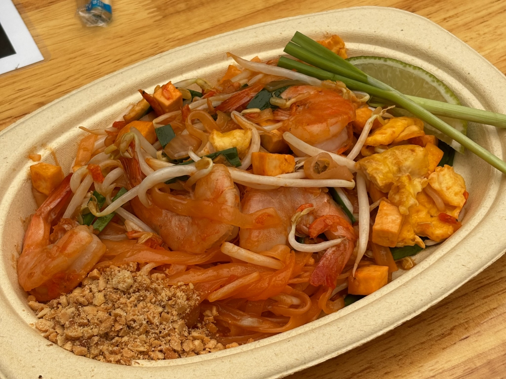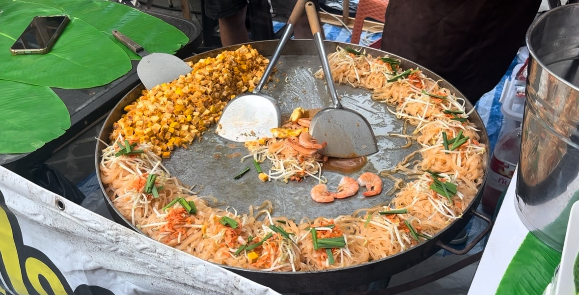 마켓에서 팟타이에 꼬치, 맥주 한 잔을 사서 자리에 앉았는데 사람이 너무 많아 내 자리 네 자리 할 것 없이 모든 자리에 꽉 채워 사람들이 앉았다. 그런데 마침 내 옆자리에 앉은 사람들이 한국 사람들이었다! 처음엔 대화를 못 알아듣는 척하려고 했는데 나도 모르게 웃긴 이야기에 피식 웃음이 터졌고 “한국인이세요?”라는 물음 뒤로 자연스럽게 나도 그 모임에 끼게 되었다. 재즈 공연이 이어지고 있었지만 사실상 무대를 바라보는 배치가 아니라 사람들끼리 서로 마주 보고 음식을 먹는 테이블 형태이다 보니 재즈 라이브는 그저 BGM이 되었을 뿐이었다.