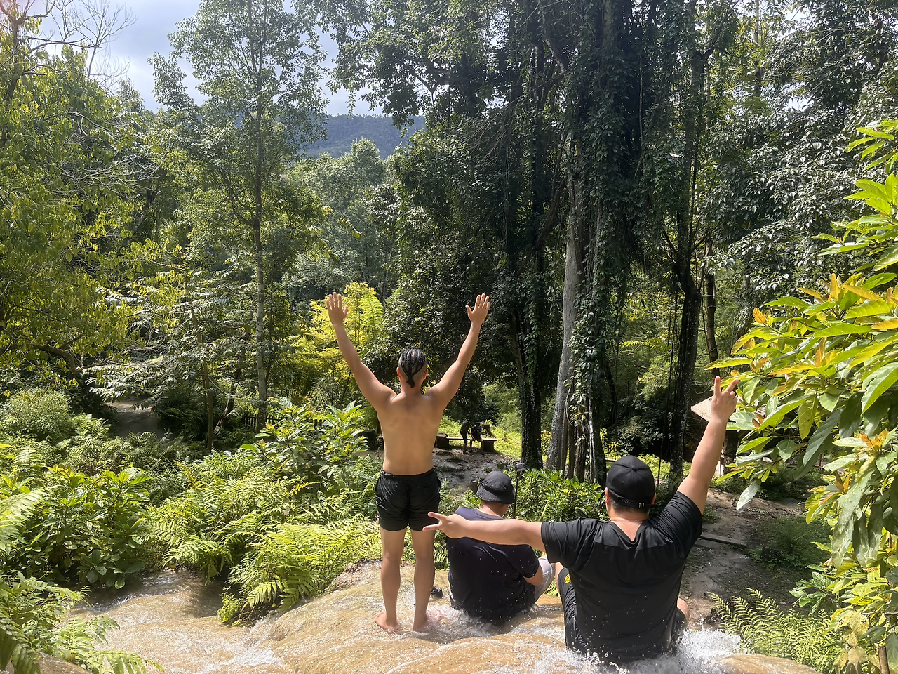 K-전기차에서 K-pop을 들으며 한 시간쯤 달렸을까. 우리는 국립공원 입구에 도착했다. 공원 입장료는 따로 없었고, 라커 이용료가 원래 30바트(1200원 정도)였는데 우리는 가이드가 있었기에 우리는 라커를 이용하지는 않았다. 애초에 수영복을 입고 갔기 때문에 ”저에게 맡기고 다녀오세요! “라고 해맑게 웃는 미야에게 짐을 맡기고 바로 폭포로 들어갔다.