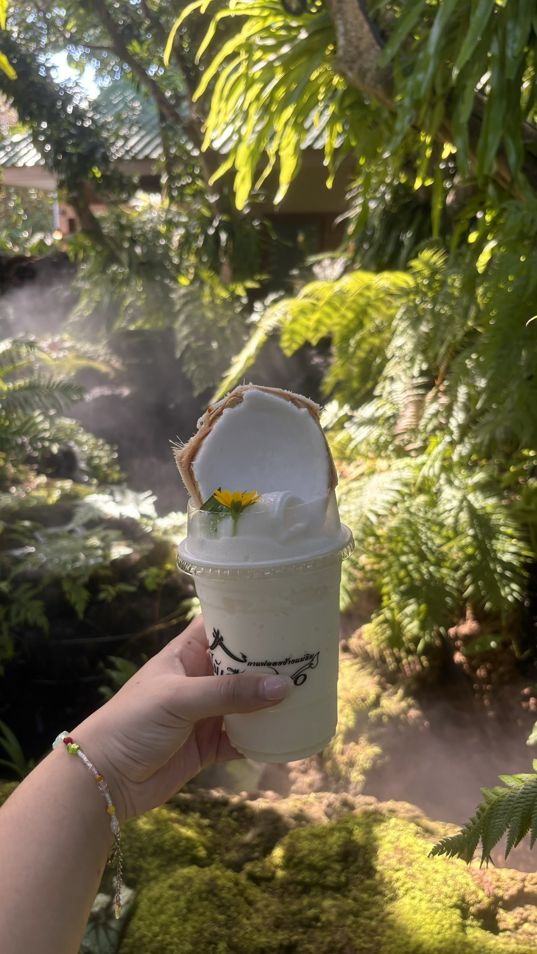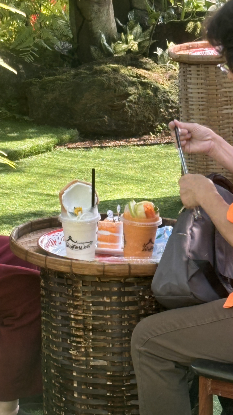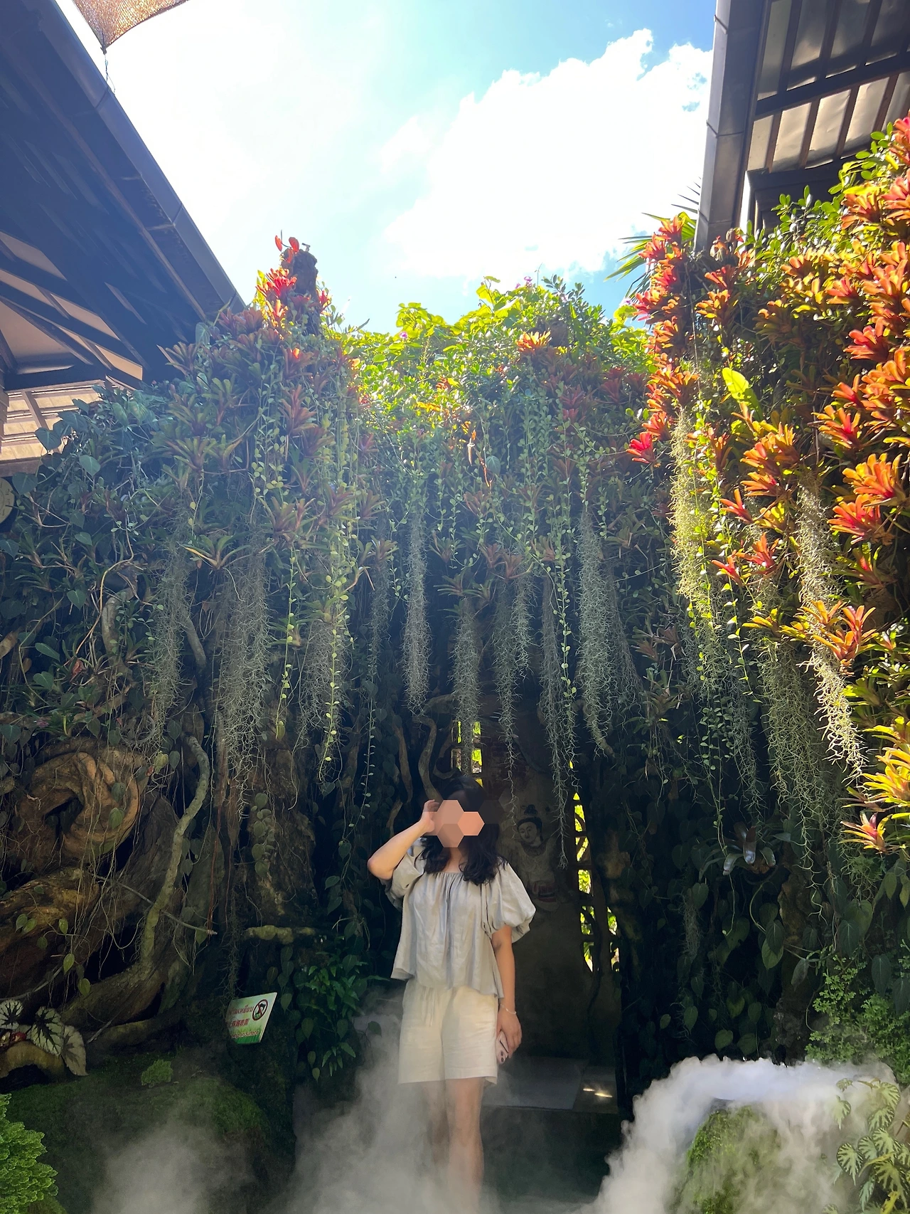 밥을 다 먹고 나와서는 아바타에서 나올 것만 같은 정원을 구경하고, 카페에서 음료를 주문했다. 지난번 동행투어와는 사뭇 느낌이 달랐다. 여자 동생들과 함께 했던 지난 투어 때는 어딜 가든 사진으로 풍경을 담는 것이 먼저였고, 누가 먼저랄 것도 없이 풍경이 예쁘면 “언니 여기 앉아보세요~!”하고 인생사진을 남겨주기 바빴다. 이번 투어 때는 예쁘게 꾸며진 정원에는 심드렁한 형님들이 ‘아이스 아메리카노’를 주문하고는 바로 의자에 앉아서 쉬었다. 코코넛이 통째로 올라간 스무디가 있다고 내가 아무리 말해도 그들은 별 관심이 없었다. 내가 기댈 곳은 미야뿐이었다. 미야는 다행히 생망고가 올라간 요거트를 주문하고 음료가 나오면 같이 사진을 찍으며 나와 쿵짝을 맞춰주었다.
