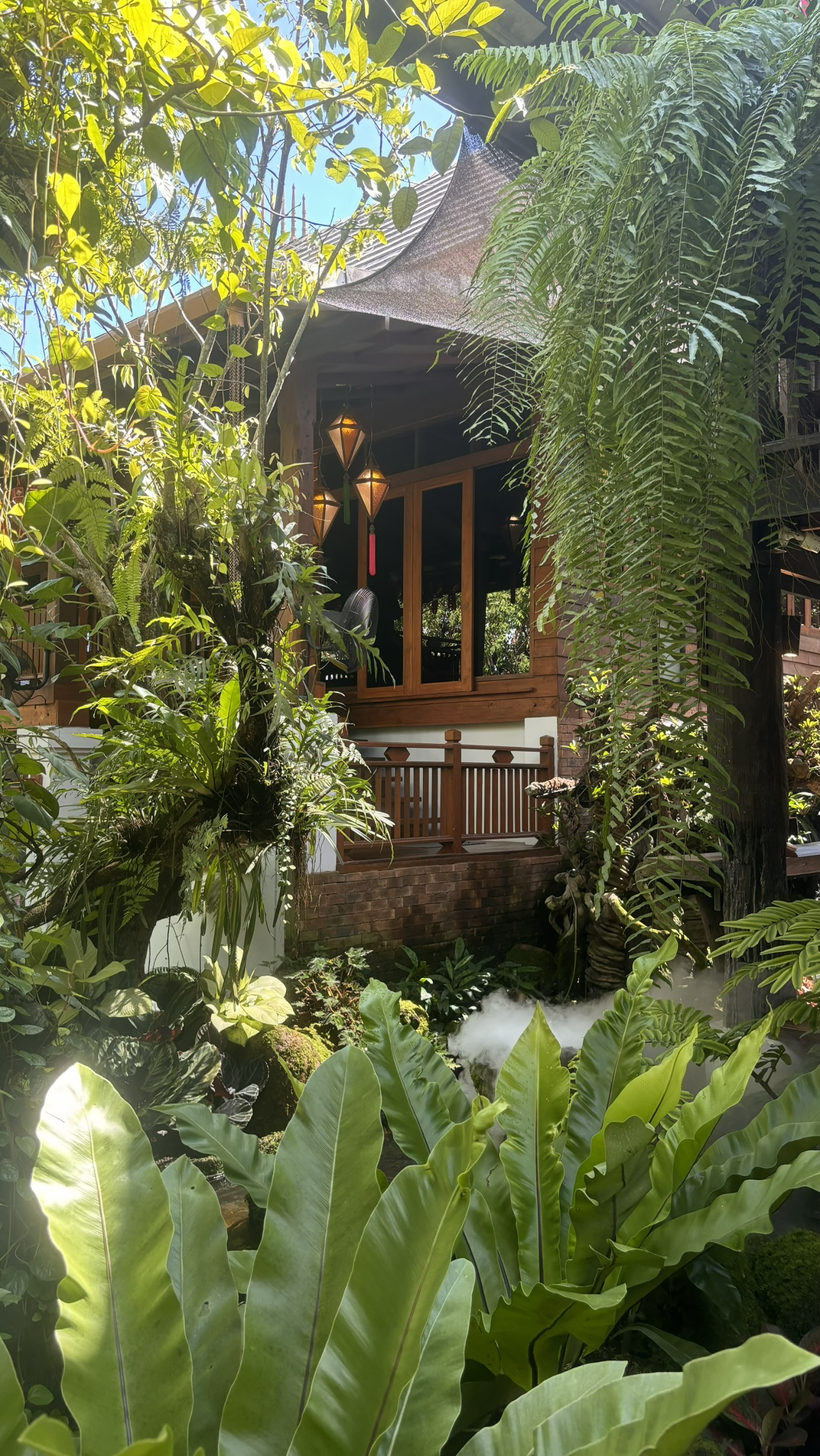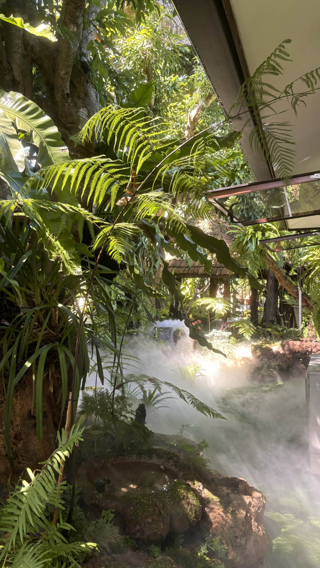 12시가 조금 넘은 시각. 나름의 운동이었는지 몹시 배가 고팠다. 돗자리를 가져와 잔디밭에 앉아 싸 온 음식을 먹는 외국인들을 보니 더욱 식욕이 돋았다. 하지만 우리는 태국북부 전통음식점을 이미 예약해 둔 터였다. 미야의 추천 식당으로 현지인들만 가는 대형식당이라고 했다. 실제로 가보니 엄청나게 큰 부지에 레스토랑과 카페가 합쳐져 있었고 그 안에는 정글 같은 태국식 정원과 폭포까지 있었다.