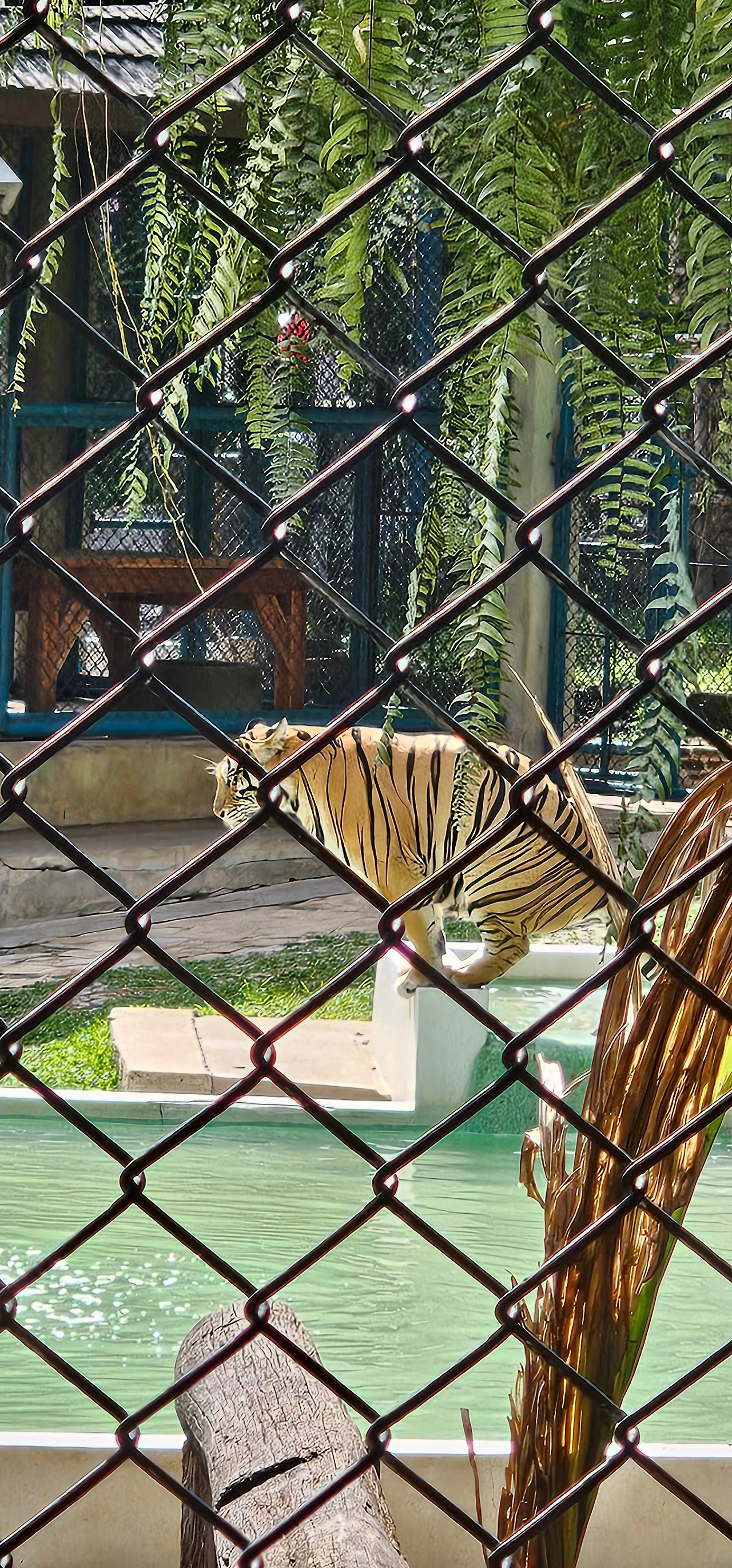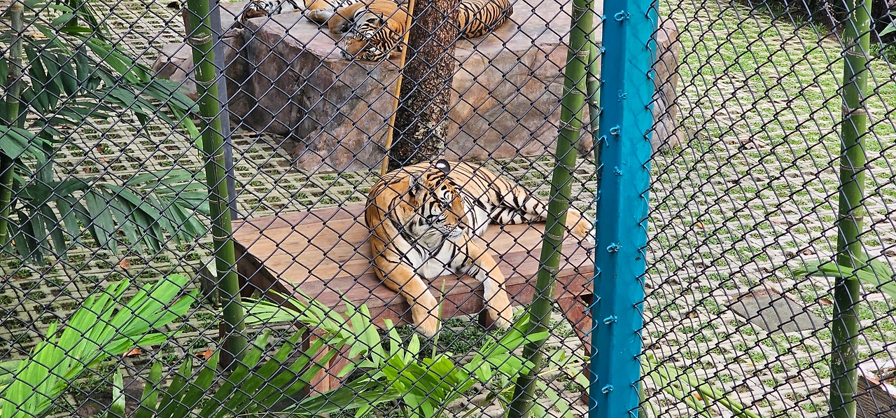 10분 정도의 체험과 사진촬영을 마치고 밖으로 나왔더니 바로 앞은 자이언트 호랑이 우리였다. 어떤 아기가 아빠 품에 안겨 “Mommy!!” 하면서 울고 있었는데 엄마가 혼자 그 우리에 들어간 듯했다. 우리가 대단하다고 하자 그 아빠는 자기가 인도에서 왔다고 말하면서 인도사람들은 호랑이를 무서워하지 않는다고 했다. 과연 아기의 어머니는 너무나 자연스럽게 큰 호랑이와 함께 사진을 찍고 나왔고 철조망 밖에서 지켜보는 것만으로도 무서웠던 우리는 그녀의 대담함에 박수를 보냈다.