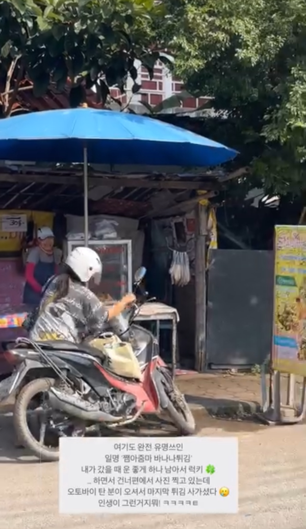결과적으로 말하면 나는 이곳의 바나나튀김을 맛보진 못했다. 3대 워라밸 대장답게 잼 아주머니도 15시를 전후해 문을 닫고 홀연히 떠나신다고 했다. 내가 마음잡고 방문한 날은 영업일이 아니었는지 아예 문이 닫혀 있었고, 근처 요가원에 가다가 우연히 들린 날에는 다행히도 문이 열려있었다! 럭키비키를 외치며 건너편에서 가게 사진을 찍고 있는데 가게 앞에 홀연히 주차하는 바이크가 보였다. 설마 아니겠지, 아니겠지 했는데 바이크에서 내린 현지인으로 보이는 여성은 마지막 남은 튀김과 도넛들을 싹쓸이해 갔다.