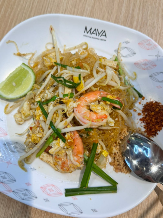 소문은 무성했지만 팟타이는 워낙 여기저기서 맛볼 수 있고, 심지어는 야시장에서도 간단히 사 먹을 수 있기 때문에 굳이 대형몰 안의 푸드코트까지 찾아가 볼 생각은 없었다. 그러나 여행의 마지막 날, 비행시간 전까지 마야몰에서 쇼핑을 하며 보내자는 동행들 덕분에 이 팟타이를 맛볼 수 있게 되었다. 점심시간 무렵이었으나 우리가 갔을 땐 아쉽게도 문신남 사장님의 모습은 보이지 않았다. 여자 사장님이 만들어 주신 팟타이도 충분히 맛있었다(특별한 맛인지는 잘 모르겠었으나). 또 땅콩, 라임, 설탕, 페퍼 등이 배식대 옆에 놓여 있어 마음대로 토핑을 추가할 수 있었다. 그러다 보니 이게 원래 맛있는 팟타이인지, 내가 조합을 잘했길래 맛있는 지도 모를 지경이었다.