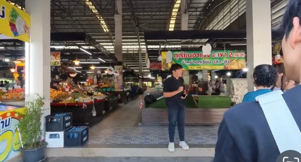 그랜마즈 홈 쿠킹클래스의 수업은 단순히 조리법을 배우는 것이 아니라, 태국 요리에 대한 이해부터 시작됐다. 수업이 본격적으로 시작되기 전, 우리는 먼저 현지 시장으로 향했다. 짜른짜른마켓(Charoen Charoen fresh market)이라는 시장은 규모는 크지 않았고 산티탐의 타닌시장과 비슷한 규모로 동네시장처럼 보였다. 우리말고도 여러 클래스의 팀들이 시장으로 모였다. 태국 요리에 쓰이는 다양한 향신료와 재료들을 직접 보고, 만지고, 냄새를 맡아보는 시간이었다.