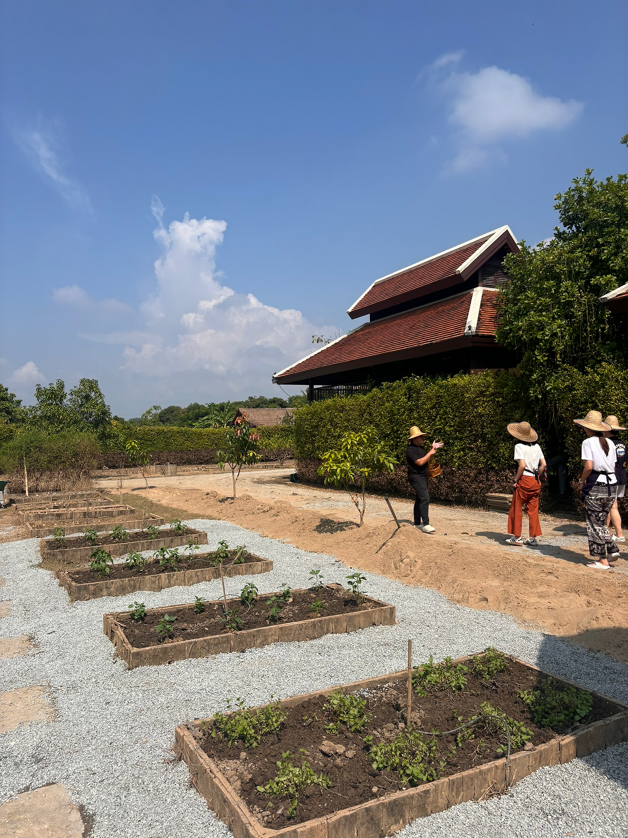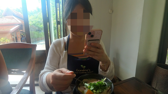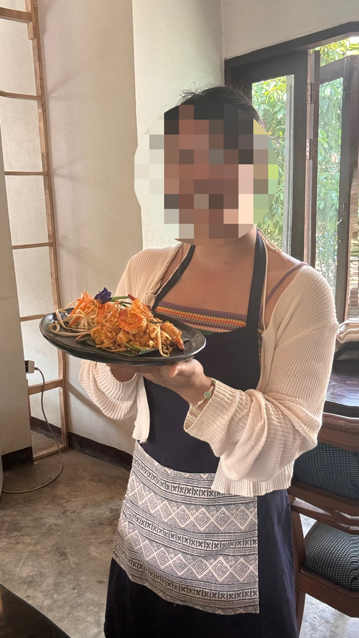요리를 마친 후, 우리는 정원 한쪽에 마련된 테이블에 앉아 각자가 만든 음식을 맛보았다. 바람이 살랑이는 야외 공간에서, 새소리를 들으며 직접 만든 태국 음식을 즐기는 시간은 그 어떤 레스토랑에서도 경험할 수 없는 특별한 순간이었다. 한 공간에서 요리를 함께하며 보다 가까워진 우리는 서로 이야기를 나누며 각자가 만든 음식을 서로 맛보기도 하며 식사를 즐겼다. 고소한 코코넛 수프, 향이 진한 레드 커리, 그리고 새콤달콤한 팟타이. 익숙하면서도 낯선 맛이 입안에 퍼지며, 이곳에서 보낸 시간이 머릿속을 스쳤다. 처음엔 그저 태국 음식을 좋아해서 신청했던 쿠킹클래스였지만, 막상 참여하고 보니 단순히 요리를 배우는 것이 아니라, 이곳 사람들의 삶을 직접 체험하는 특별한 경험이었다.