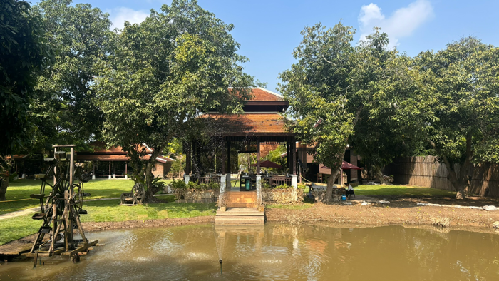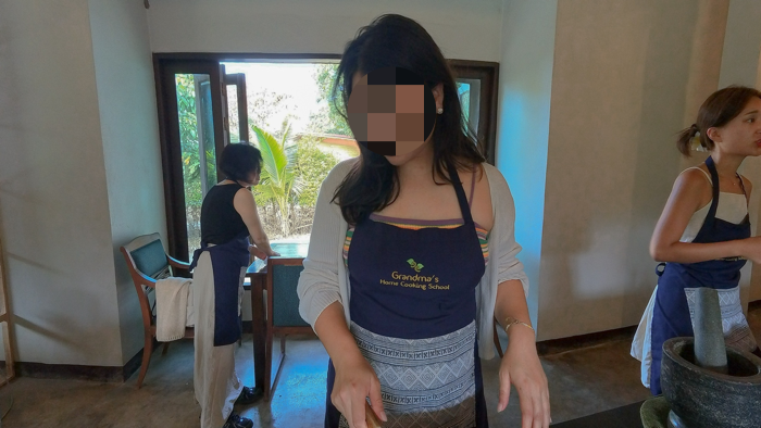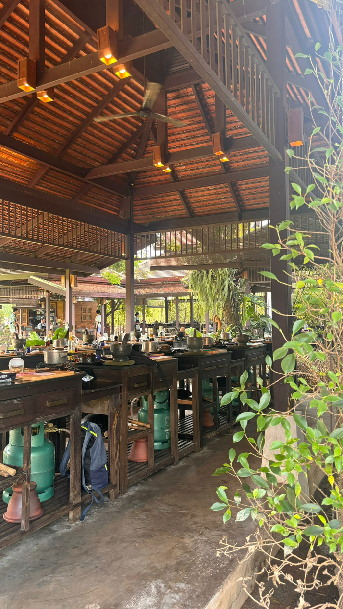 시장을 둘러본 뒤, 우리는 쿠킹클래스가 열리는 농장으로 이동했다. 그랜마즈 홈 쿠킹스쿨은 치앙마이 도심에서 조금 떨어진 곳에 자리 잡고 있어, 조용하고 한적한 분위기가 인상적이었다. 부자 할머니가 태국에 생긴 기분이 들만큼 한적한 전원주택의 느낌이 강했다. 드넓은 정원에는 푸릇한 잔디 위로 자란 커다란 나무들이 시원한 그늘을 드리우고 있었고, 나무들 사이로 그네가 있었다. 한쪽에는 연못과 물레방아가 있어 보는 것만으로도 힐링이 되었다. 수업은 바람이 솔솔 부는 야외 같은 공간에서 진행되었는데, 따뜻한 햇살과 신선한 공기가 어우러져 마치 한적한 시골집 마당에서 요리를 배우는 느낌이 들었다. 내가 갔을 때는 기온이 선선해서 견딜만했는데 여름에 방문한 사람들의 후기를 보면 뜨거운 불 앞에서 꽤나 고생하는 것 같았다.