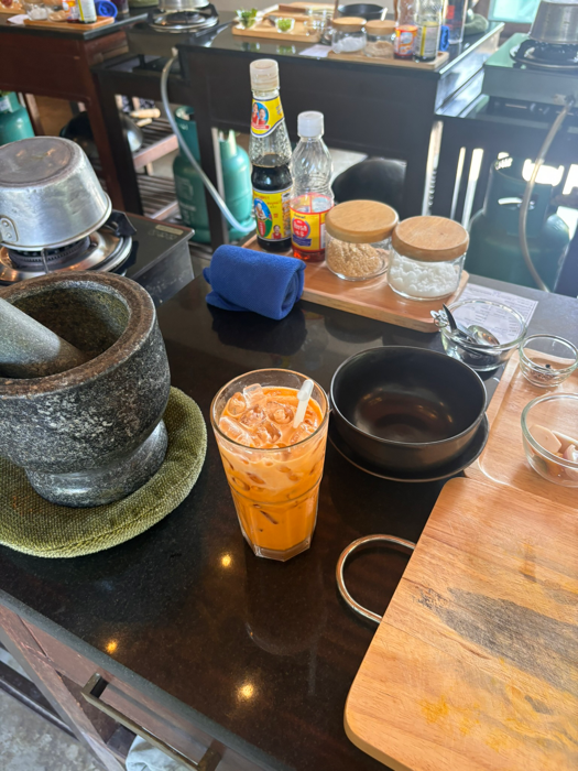 드디어 본격적인 요리 시간이 시작됐다. 사실 농장체험 전 각자 만들 요리를 선택하는 시간이 있었다. 웰컴 드링크는 타이밀크티와 버터플라이피 티, 레몬티 중 한 가지를 선택할 수 있었다. 뜨거운 태양 아래에서 농장을 체험하고 돌아오니 목이 탔는데 시원한 웰컴드링크가 딱 조리대 위에 준비되어 있을 때 그 기쁨은 말로 다할 수 없었다. 여러 번의 고객경험을 통해 치밀하고 섬세하게 계산된 과정이리라.