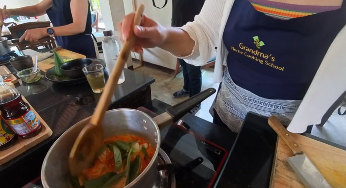 태국식 커리는 각자의 기호에 따라 다양한 방식으로 조리할 수 있다. 커리메뉴는 그린 커리, 레드 커리, 카오소이, 빠냉커리 네 가지 중에 선택할 수 있었다. 카오소이를 즐겨 먹지만 팟타이도 면 요리라 겹칠 것 같고 수프를 맵지 않은 코코넛수프를 택했기 때문에 커리는 조금 자극적인 레드 커리로 선택했다. 수프는 치킨으로, 팟타이는 새우로 만들기에, 야채로만 만드는 베지테리언 레드 커리를 선택했다.