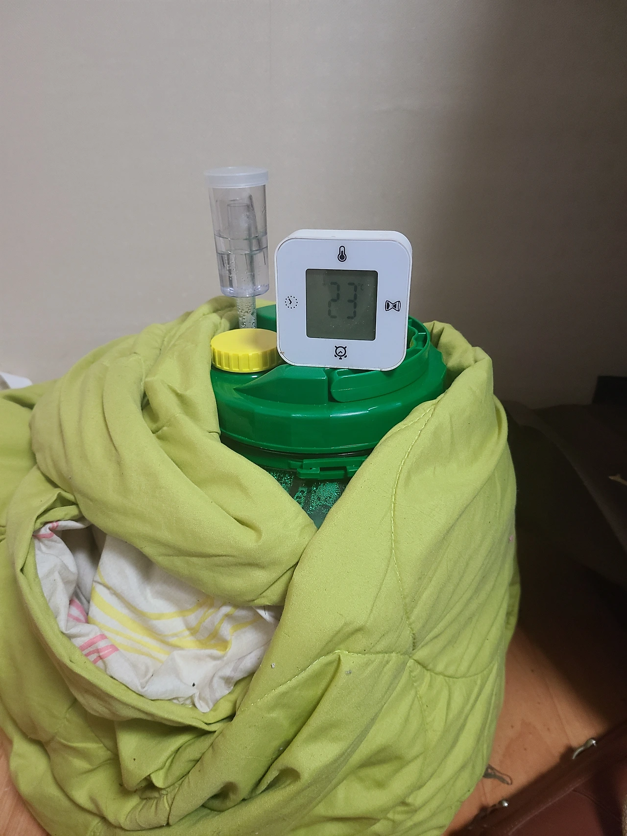그래서 이불로 감싸고 온도 조절을 해주니