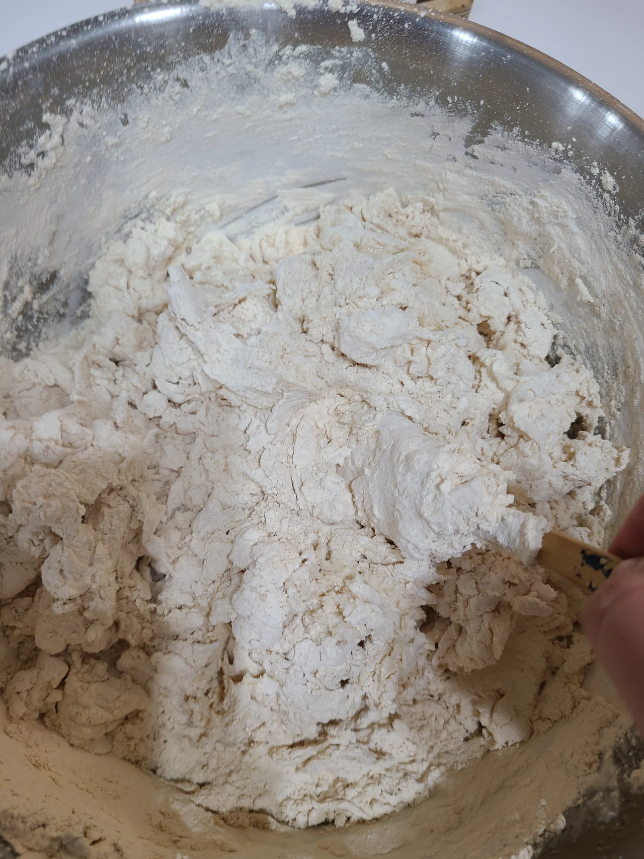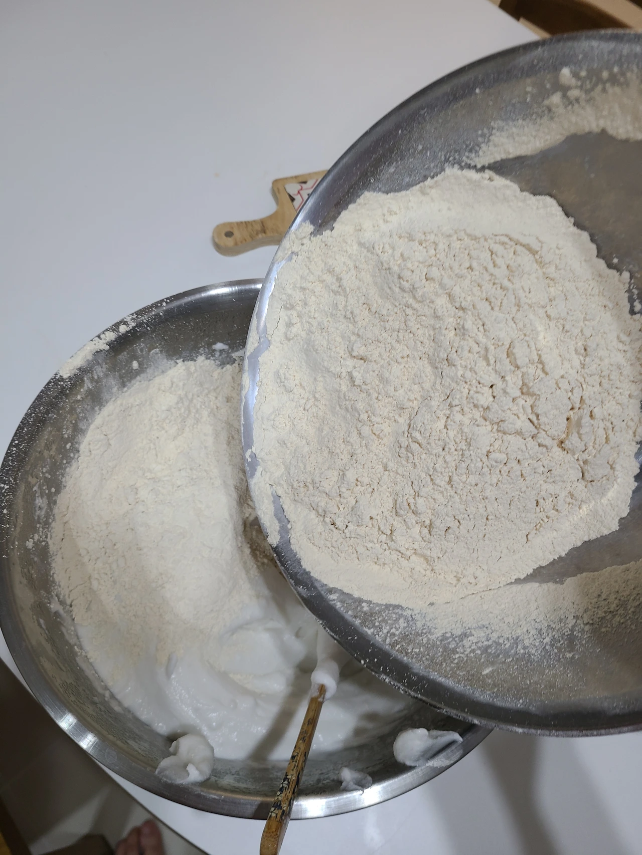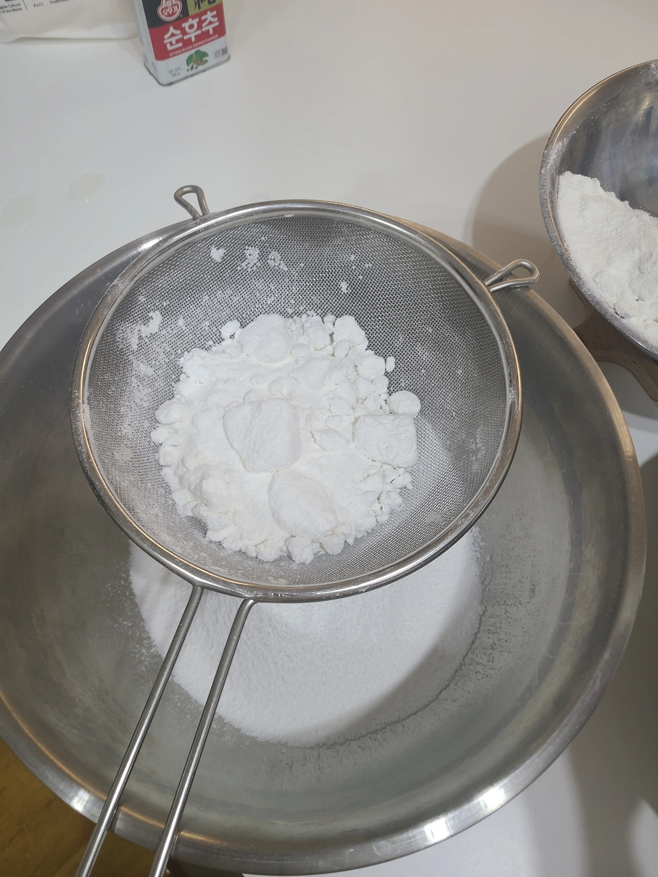 그런 걸 방지하고자 체를 친다. 체친 습식무염맵쌀가루에 끓는 물을 부어주는데
