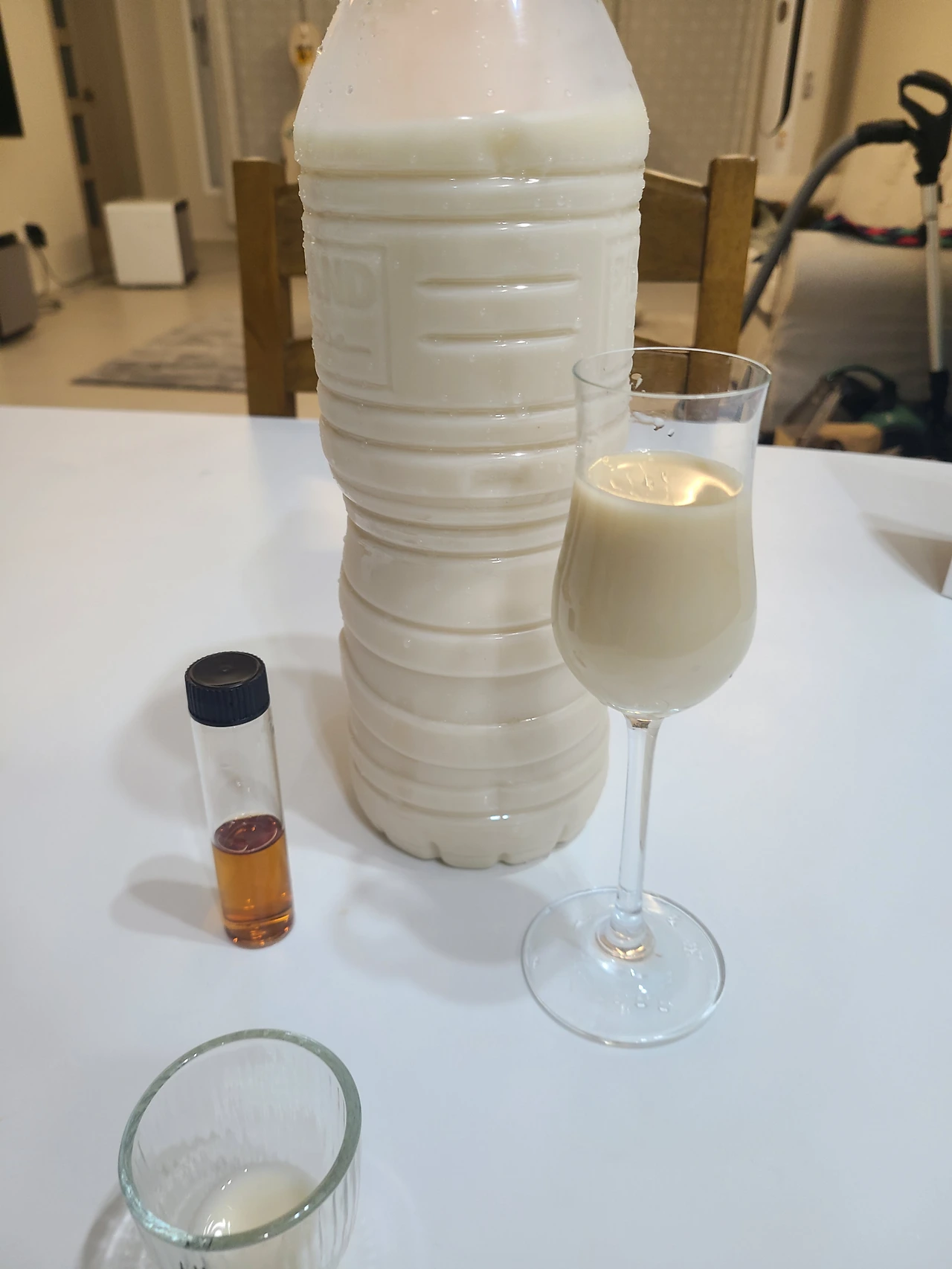 최종적으로 약 7~8리터 정도의 술이 나왔다. 막 거른 술은 다소 거칠고 도수가 높게 느껴진다.