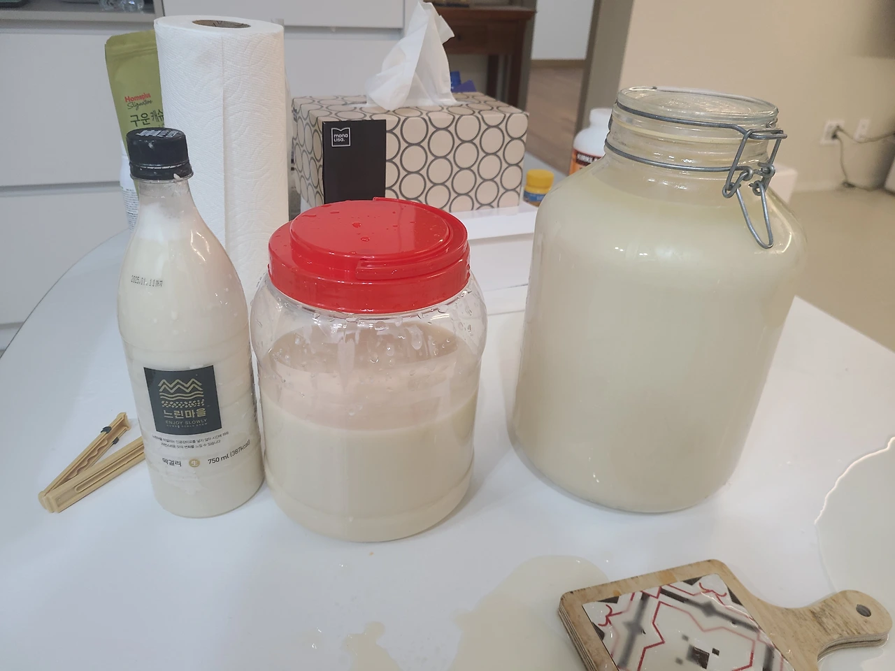 술을 거르는 과정에서 대야가 작아 일부가 넘쳐버리는 실수를 저질렀지만,