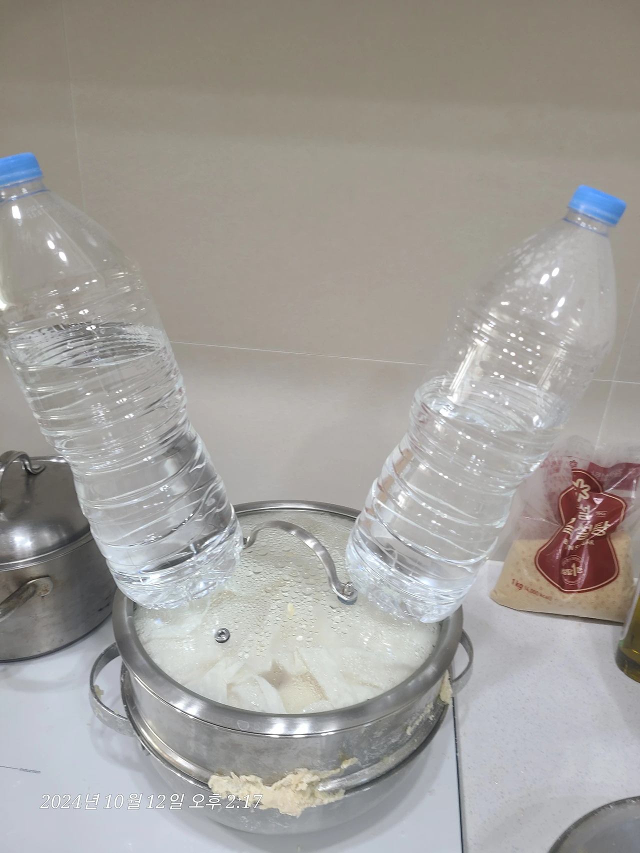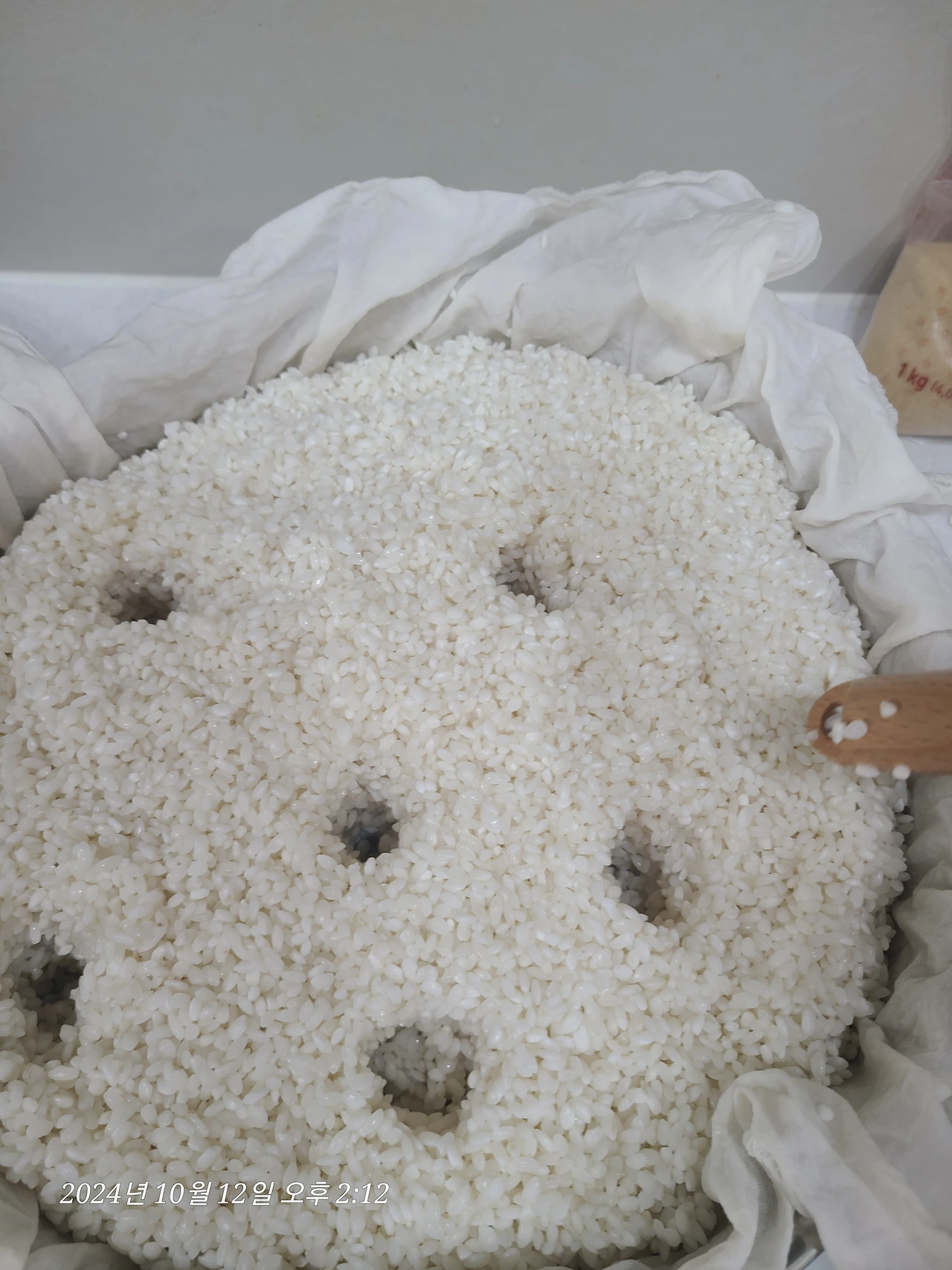 사흘 발효 후 덧술: 찹쌀 4kg