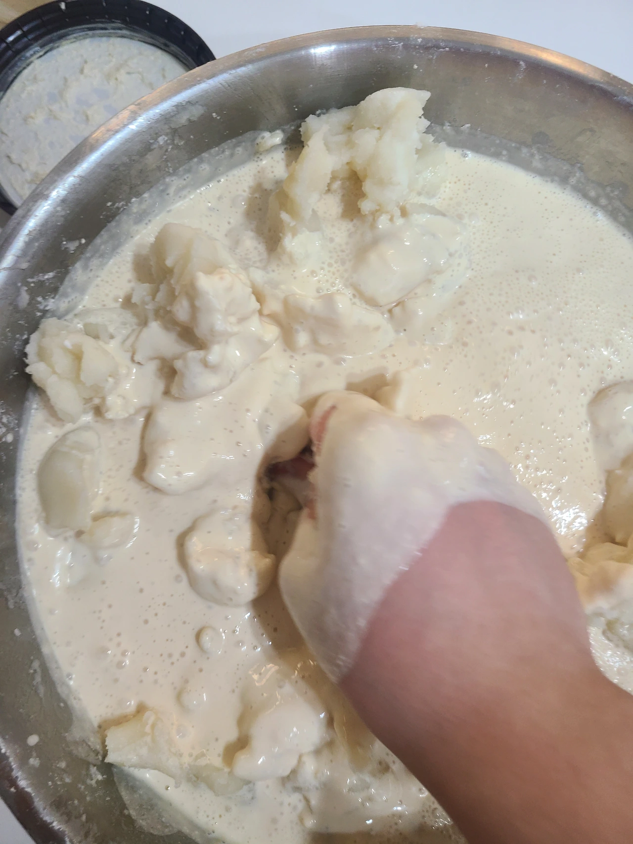 차가운 밑술을 반죽과 섞는 과정은 마치 촉감 놀이 같았다. 하지만 막상 병에 옮겨 담으려니 깔끔하게 끝낼 수 없겠다는 걸 깨달았다. 어차피 정리는 피할 수 없으니 빠르게 작업을 마무리했다.