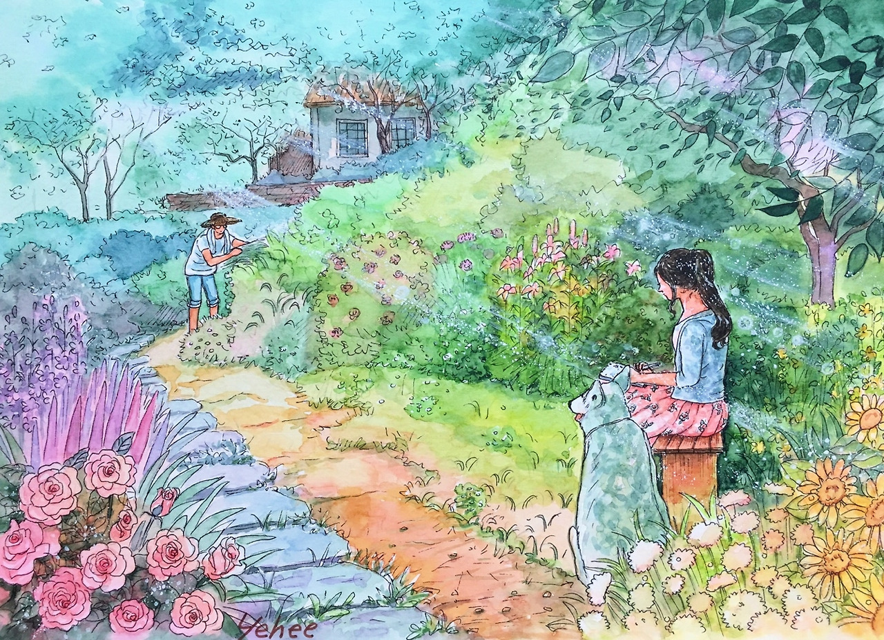 #수채화#그림#감성#여름#정원#그림에세이#에세이#일러스트#연인#추억#회상#그리움#꽃#그늘#사랑#숲