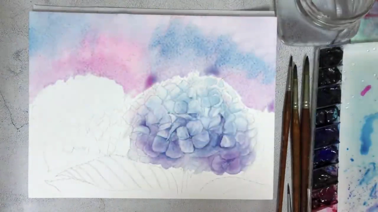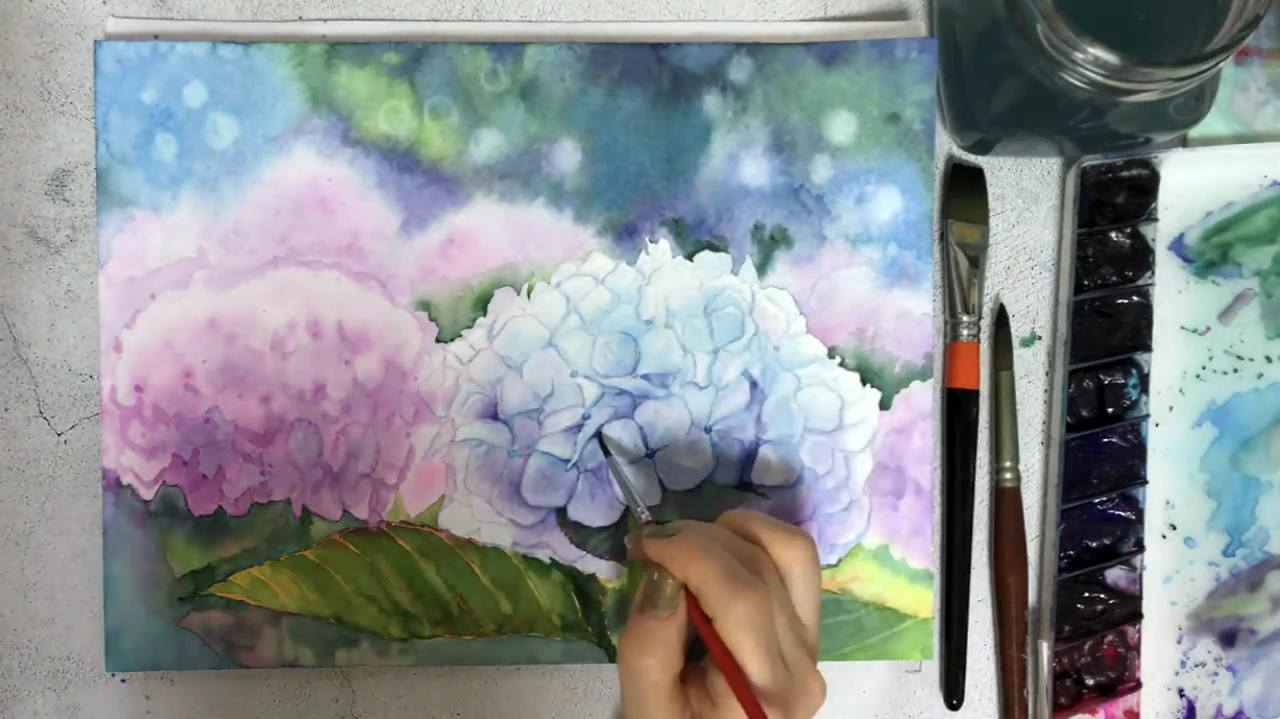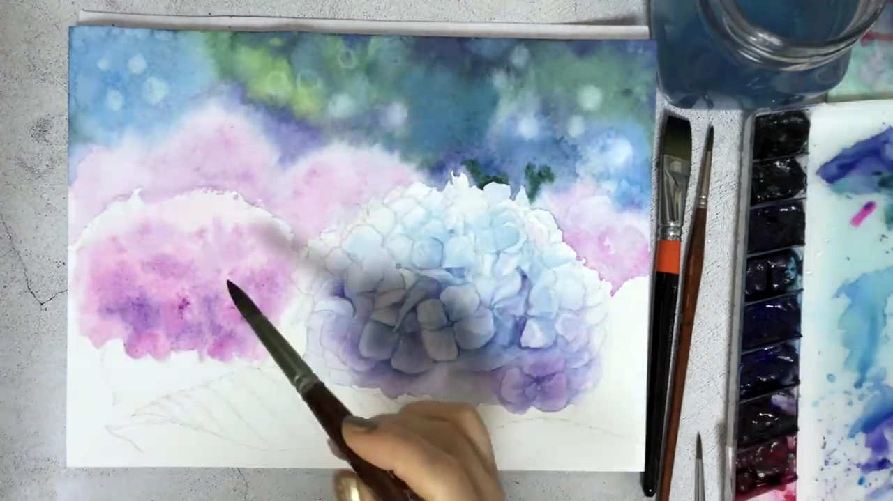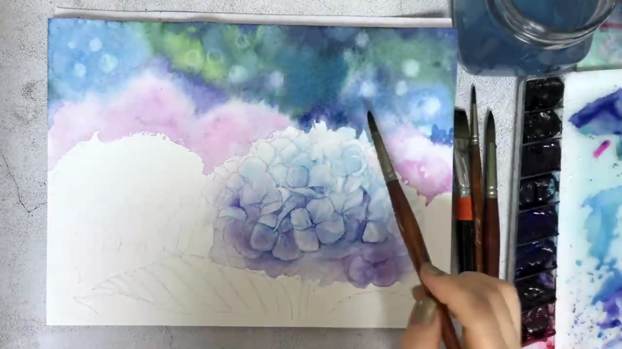 수북하고 풍성한 수국 그리기