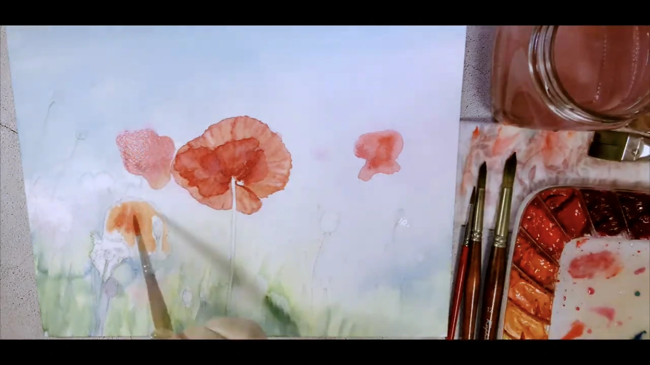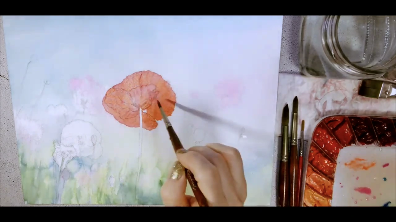 멀리 있는 꽃은 엷게 칠해서 아련한 느낌을 줍니다.