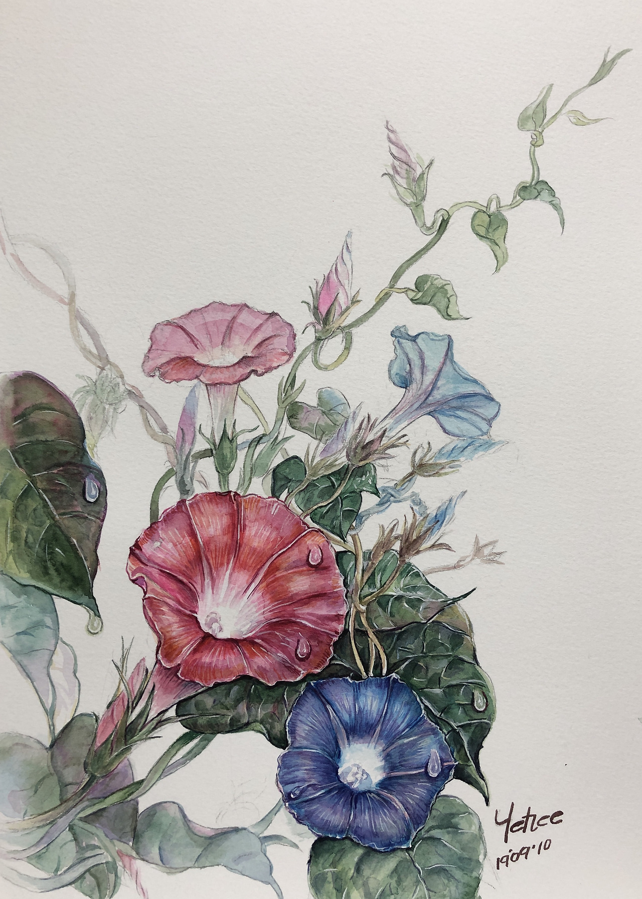 꽃말이 기쁜 소식이라는 나팔꽃을 그렸어요