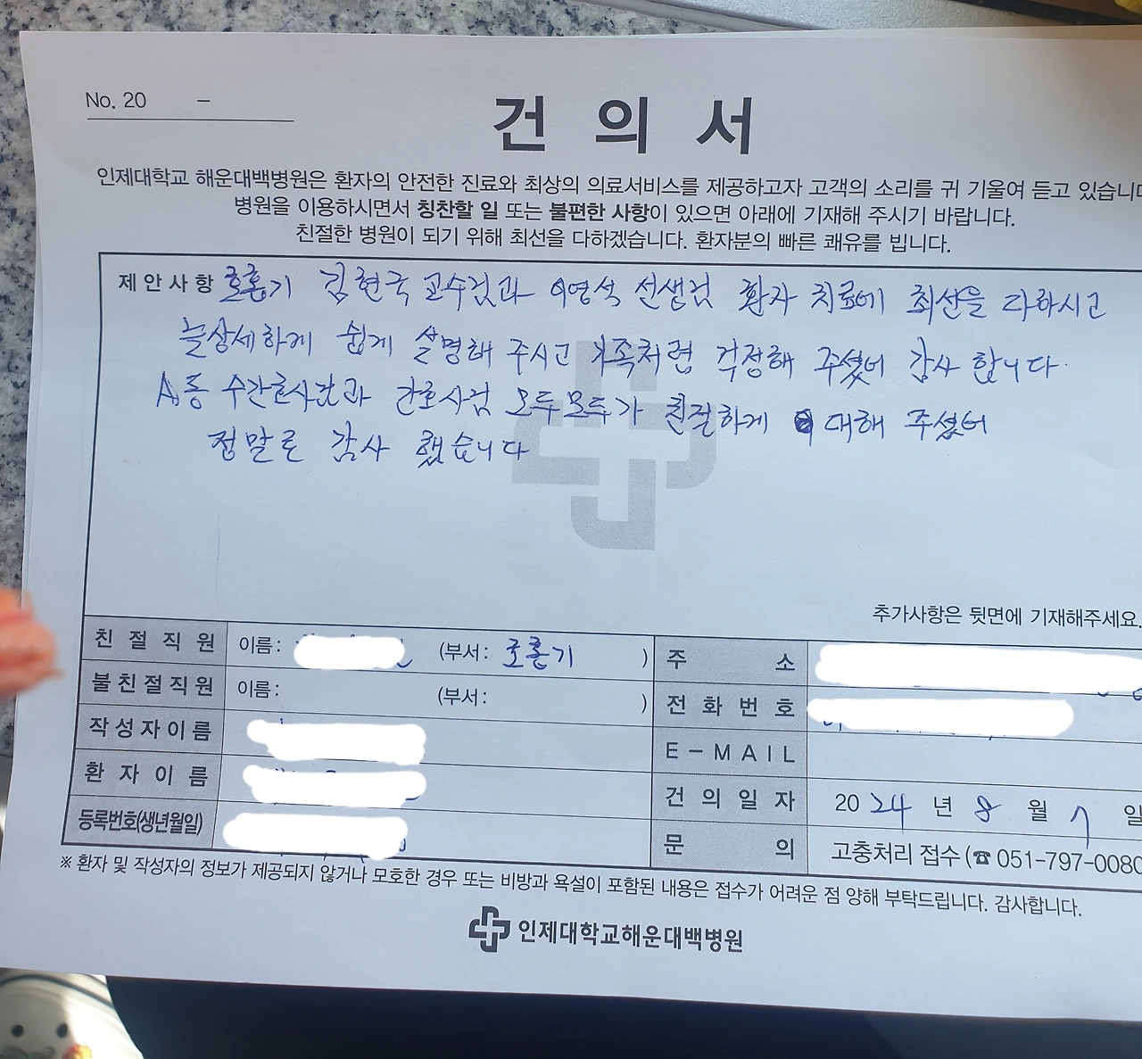 엄마가 보낸 사진은 아빠가 입원했던 병원의 건의서였다.