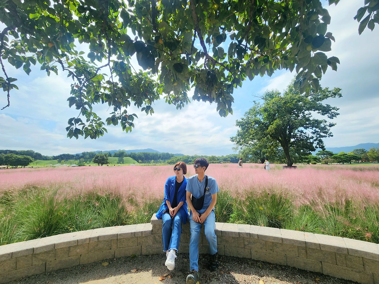 - 오빠 저기 봐 핑크뮬리다. 핑크뮬리가 벌써 폈네