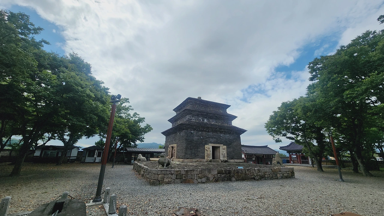 범종 앞에 앉아서 모전석탑의 위대함을 우러러본다.