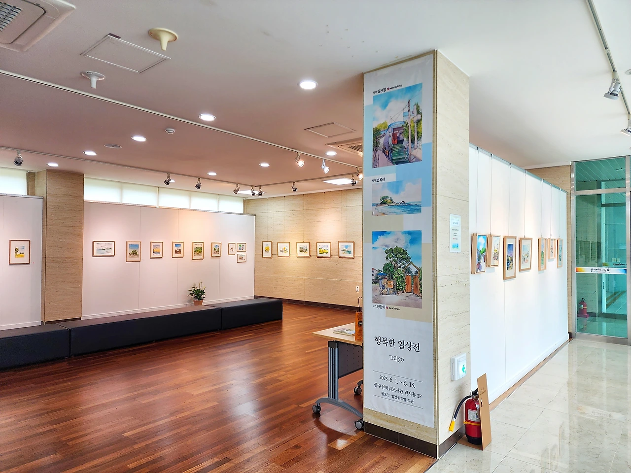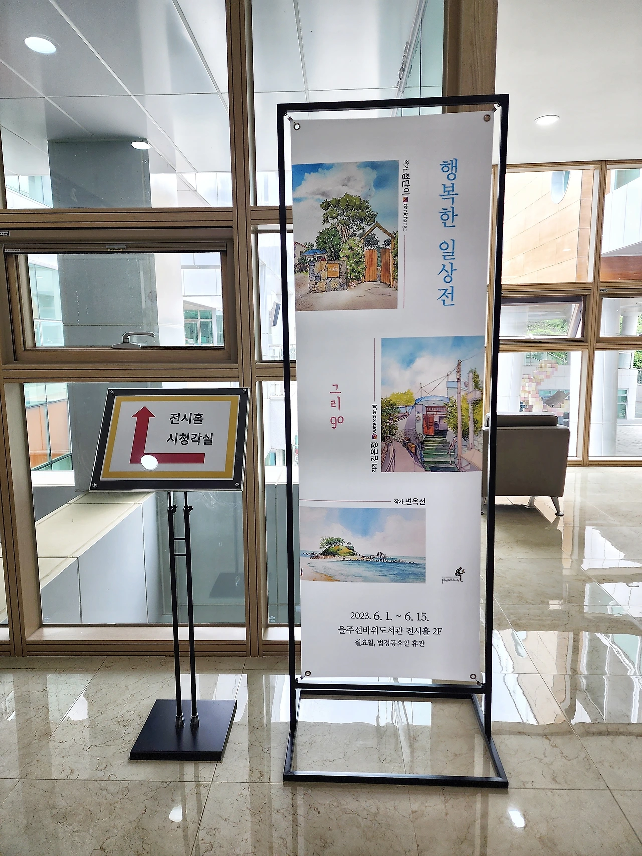 이 기분을 그대로 이어 집 근처 도서관에서 하고 있는 어반 스케치 전시를 관람했다.
