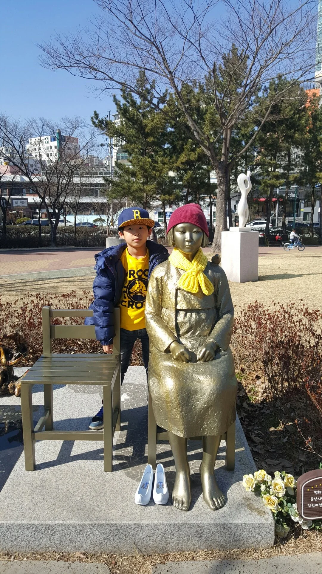 저는 2016년 울산 대공원에 있는 평화의 소녀상을 두아들과 방문해보았답니다~^^