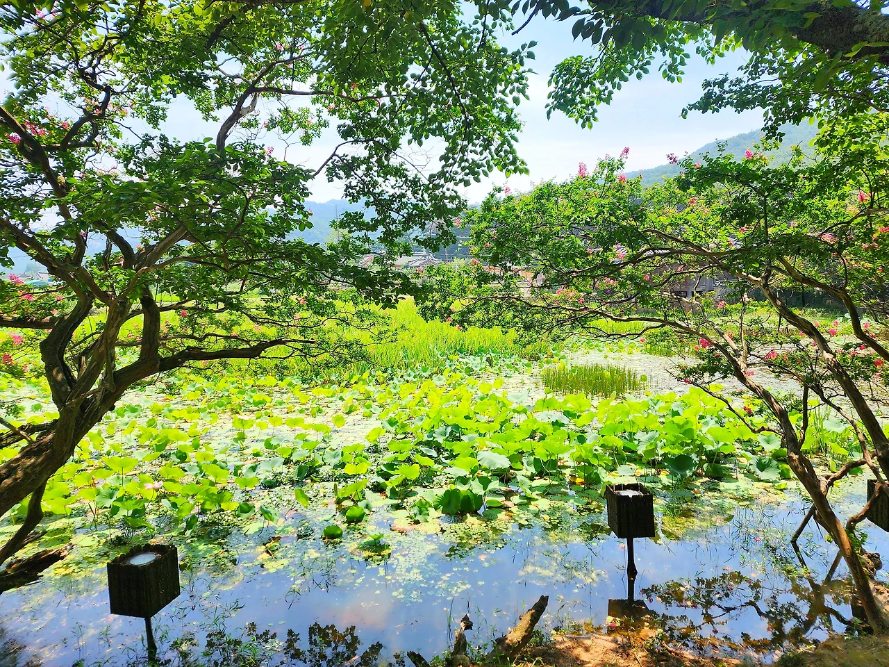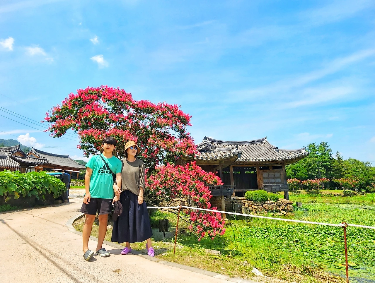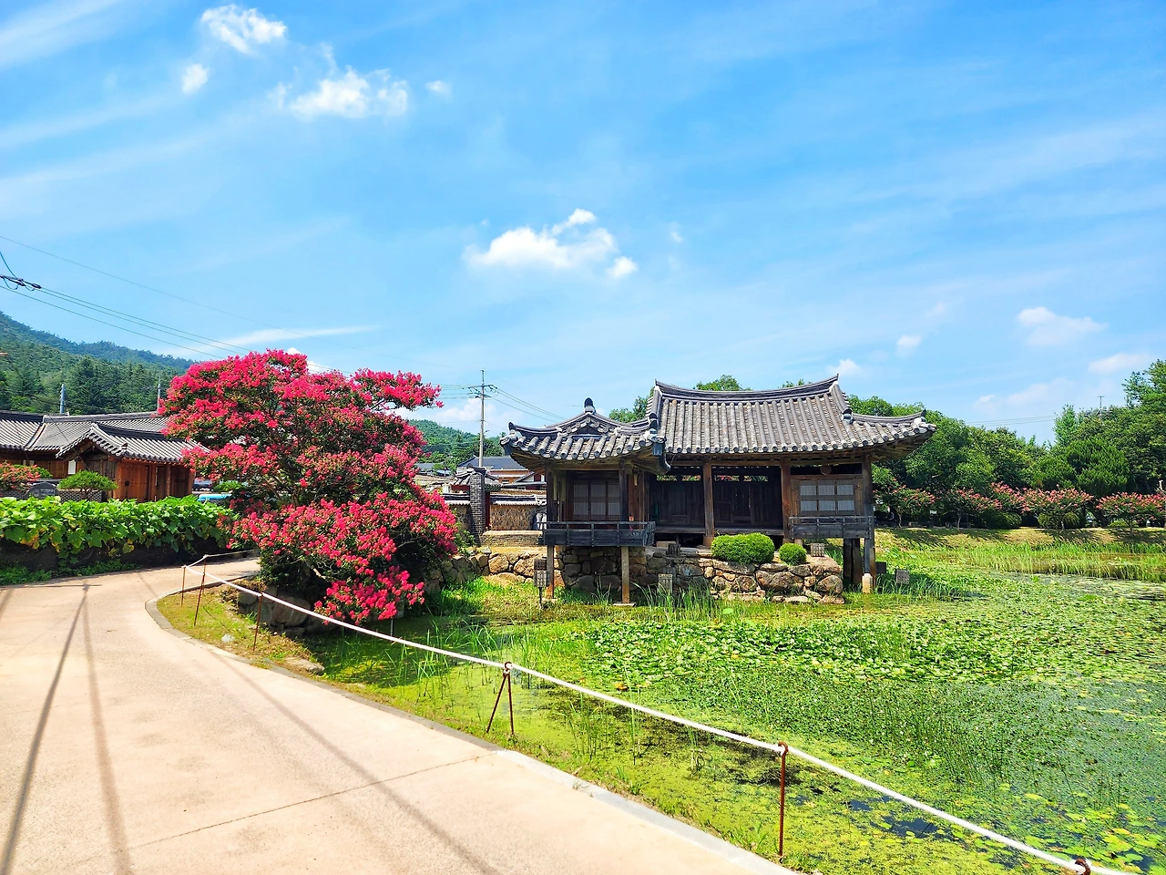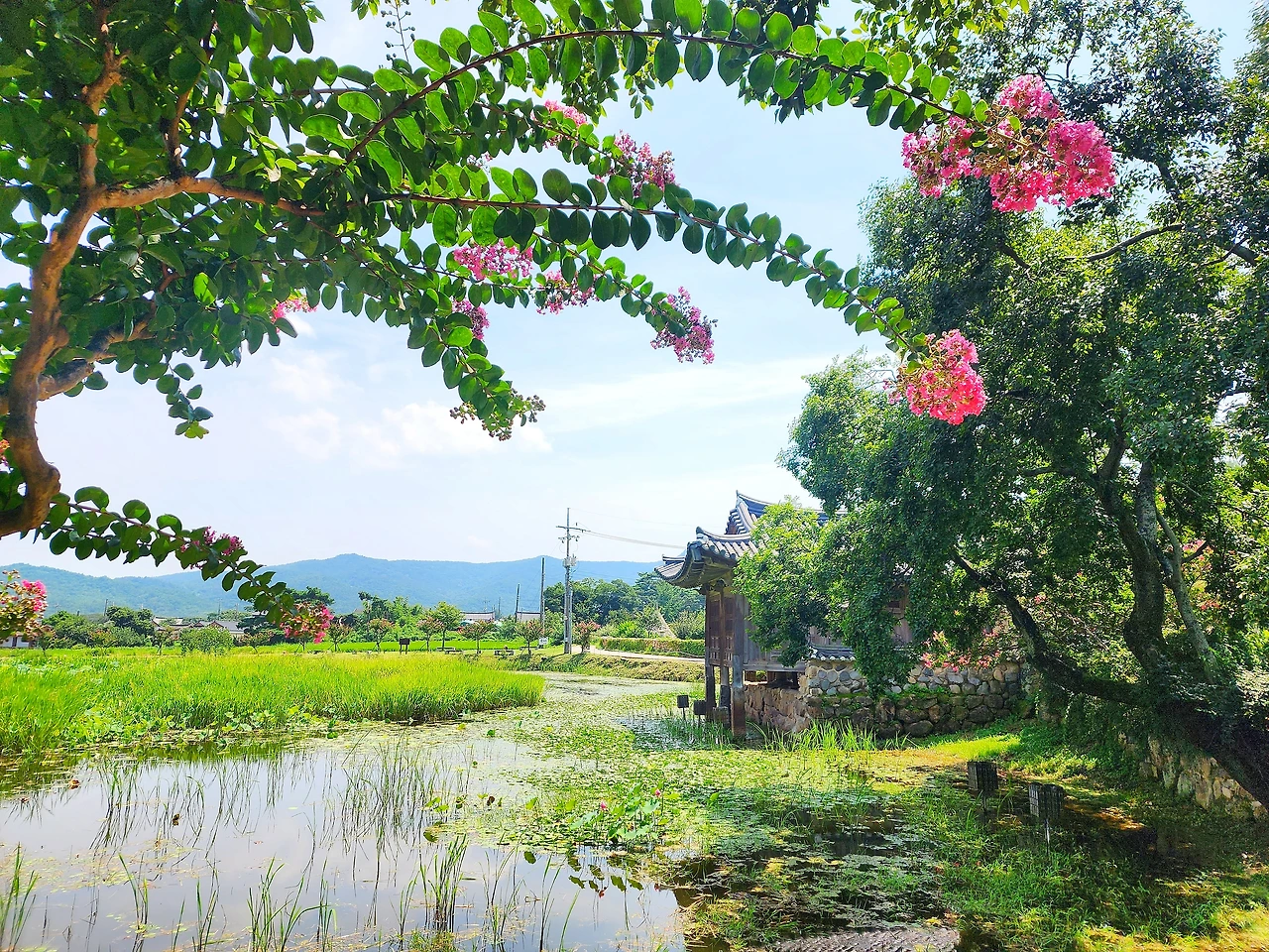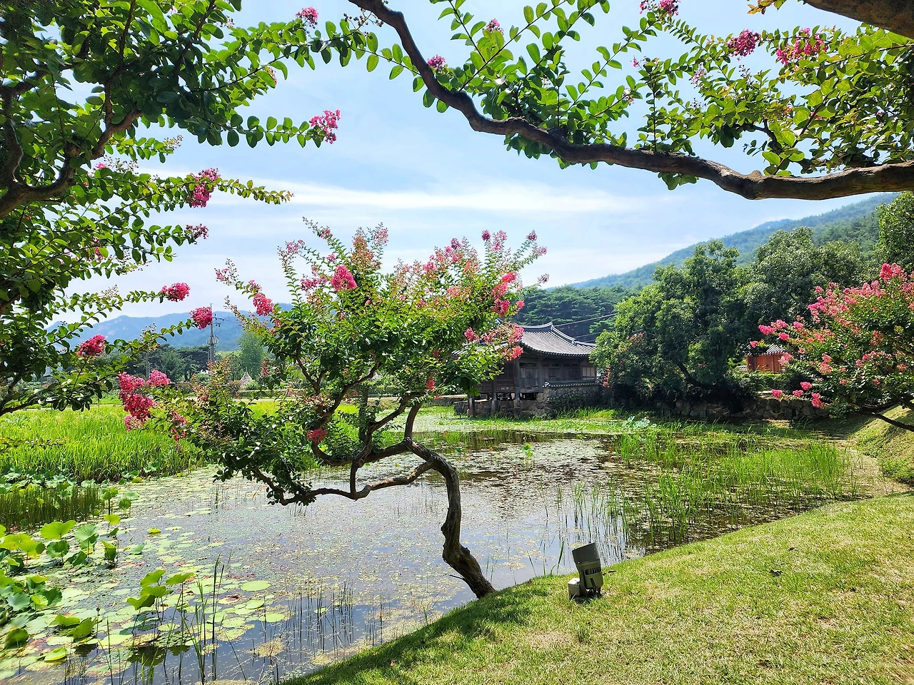 이요당과 배롱나무 그리고 연잎이 가득 찬 서출지가 너무나 아름답다.