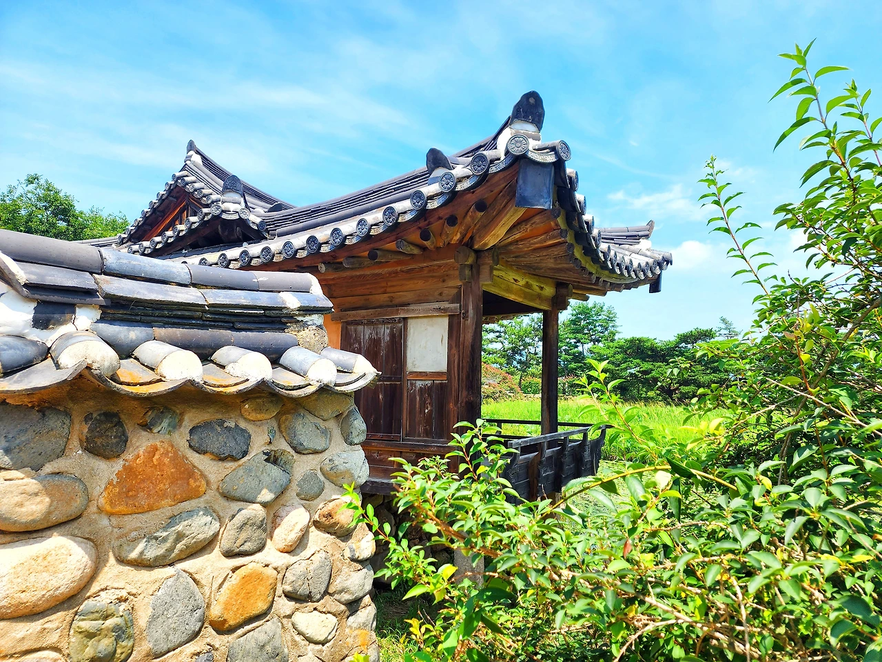 연못에 돌을 쌓아 건물을 올려서 만든 건물이라 서출지와 함께 운치 있는 장면을 연출한다.