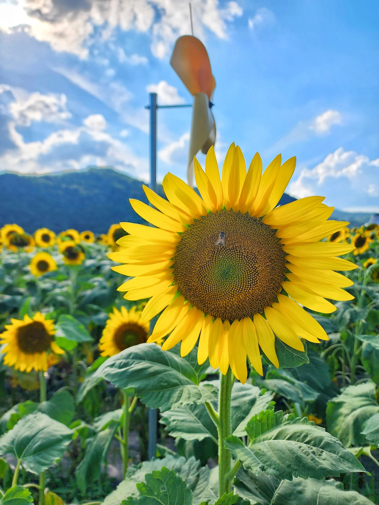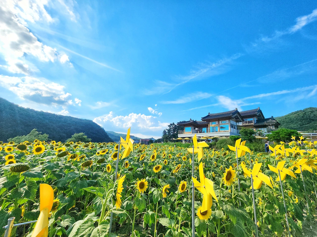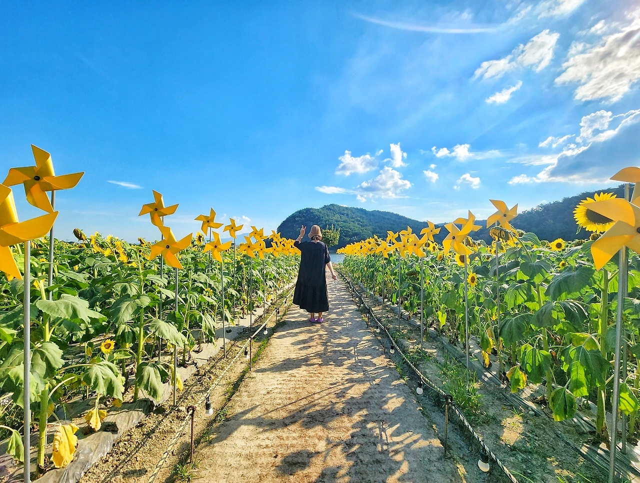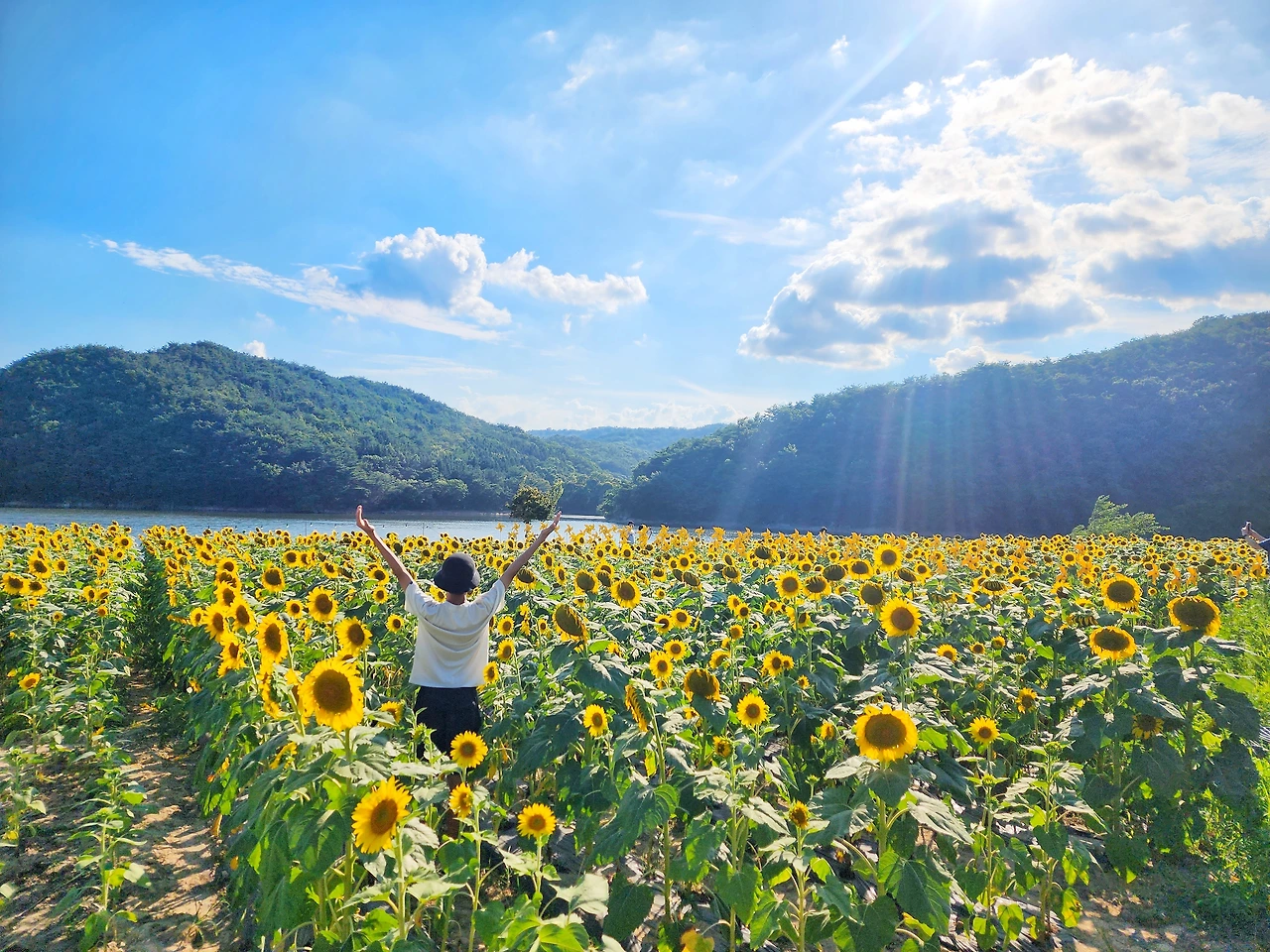 이곳은 하늘과 산, 그리고 저수지와 해바라기가 만들어낸 풍경은 정말 예술이다.