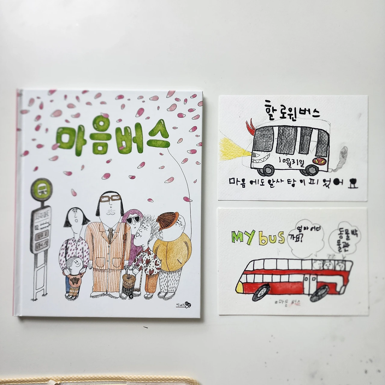 두 아이와 캘리 엽서를 만드는데 둘이 짠 것처럼 버스를 그리고 싶다고 했다.