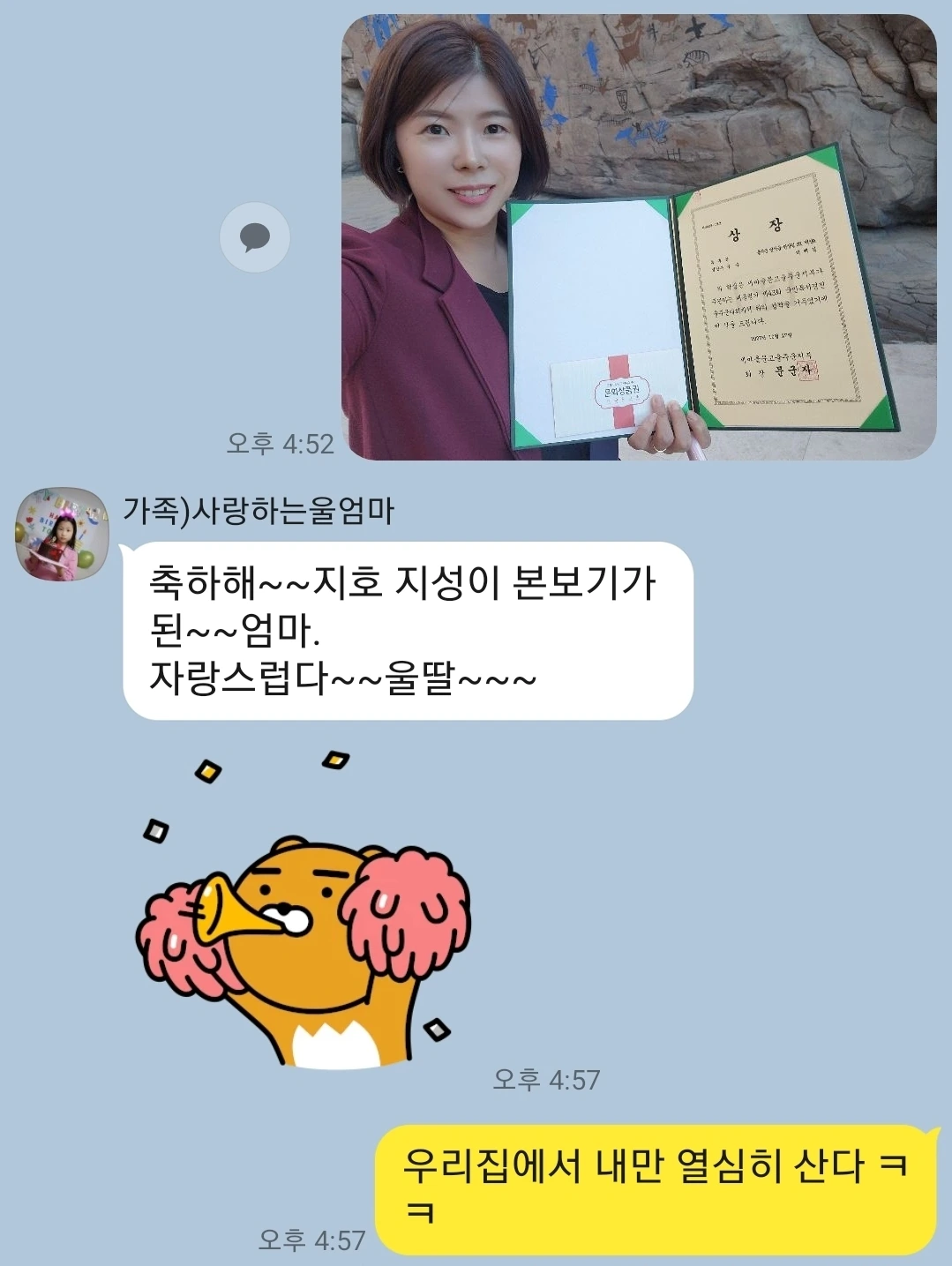 축하해~~ 지호 지성이 본보기가 된~~ 엄마