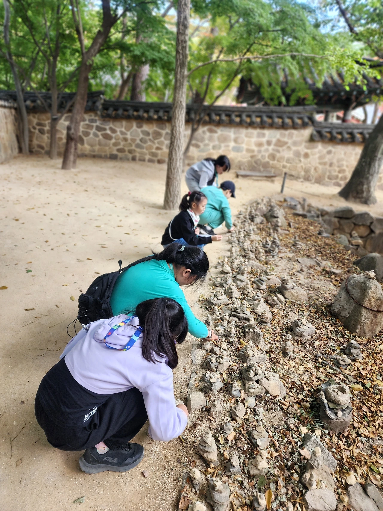 아이들과 수학여행 온 기분으로 사진을 찍고