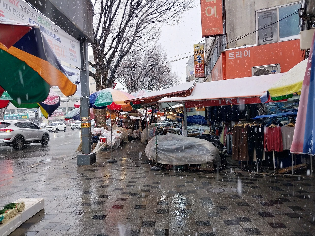 하늘에서 하얀 쌀가루가 새색시처럼 소복소복 내려앉았다. 어쩜 이렇게 곱게 내릴 수 있을까 싶었다. 매서운 한겨울이었다면 도서관까지 걸어갈 엄두조차 내지 못했을 것이다. 그러나 오늘은 공기가 부드러워, 시장을 구경하며 천천히 걸을 수 있었다.