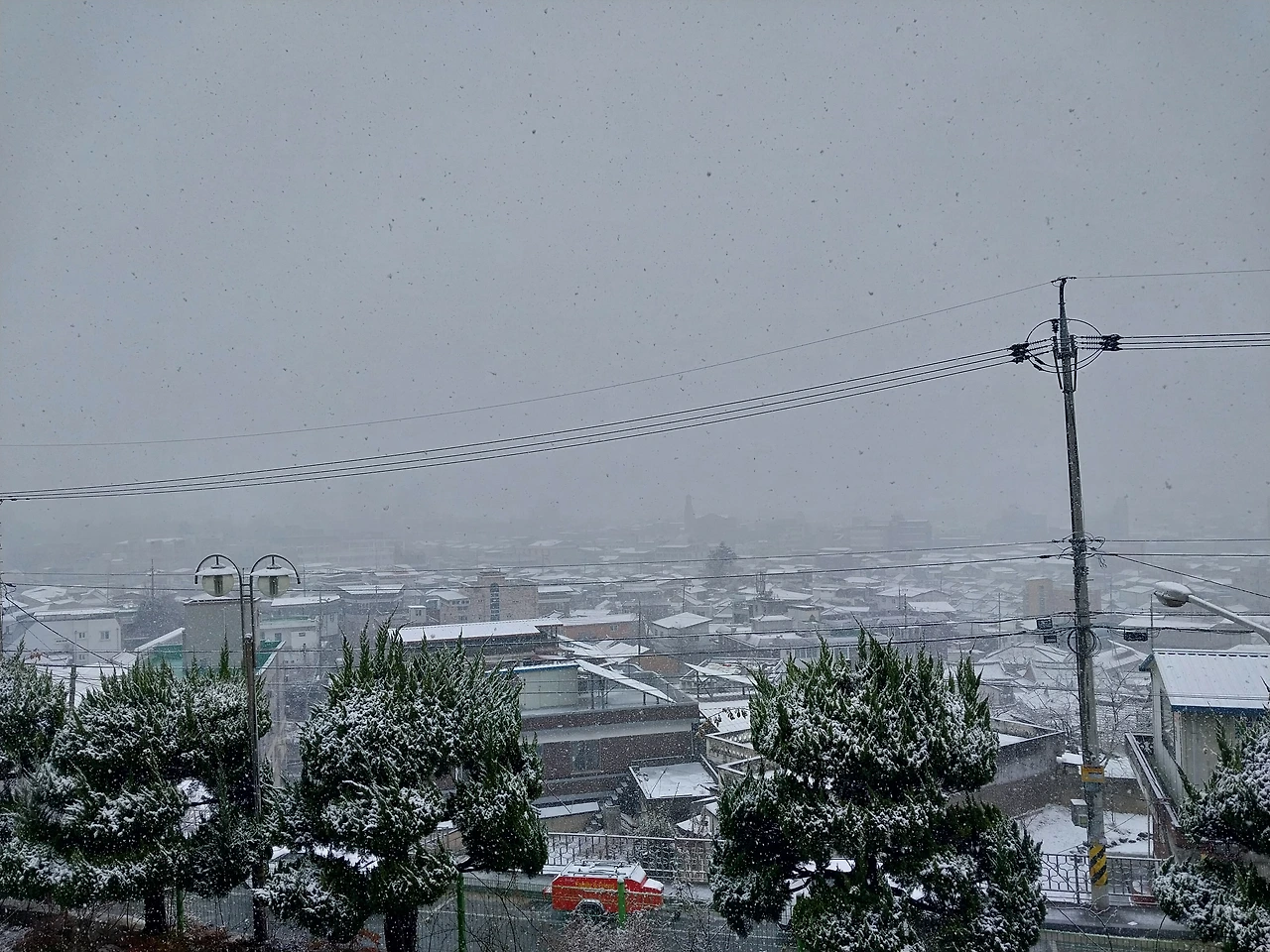 성당 마당에 잠시 멈춰 서서 기도를 드렸다. 그리고 도서관 2층에 올라 눈 내리는 풍경을 사진으로 남겼다. 날씨가 따뜻해 눈은 조금 질척였지만, 내딛는 발걸음은 한결 가벼웠다. 겨울이 가기 전에 이렇게 고운 눈을 만나 다행이었다.